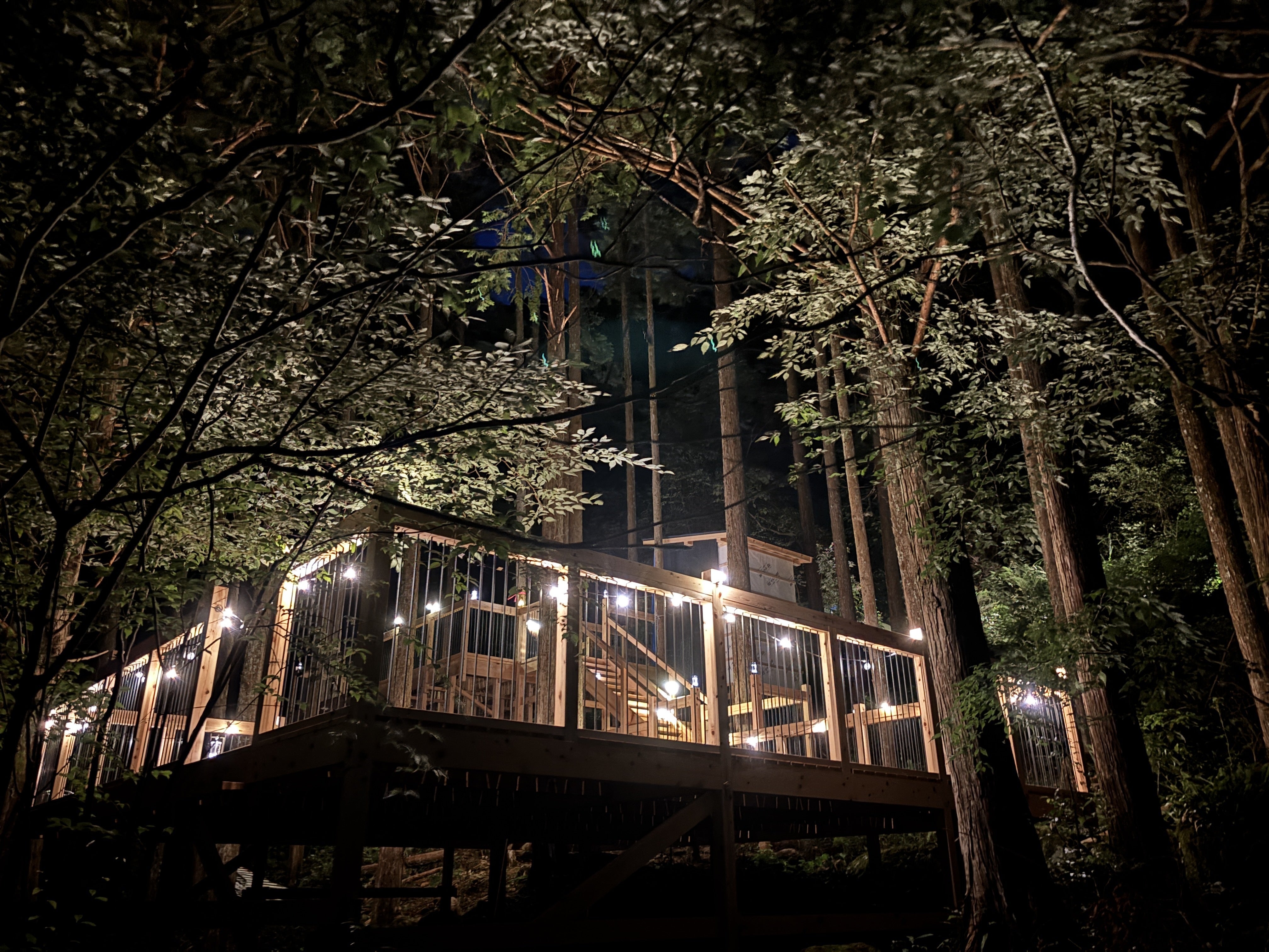 2025/06/19 23:26密基地のクラウドファンディングにご支援頂いた皆様に森の進捗状況をご報告いたします!森には2つ目のデッキが完成いたので昨夜、仲間と一緒にライトアップの写真を撮りに行きました!!夜の森もとてもいい感じでしたが、まだまだやる事がたくさんあります。ソラカゴ(巨大ハンモック)の設置、デッキの防腐剤塗装、小水力発電システム、デッキから川に続く土道づくり・・・などなどおわせむかい農園キャンプ場は「みんなで創るキャンプ場」ですこれらの作業日をSNSなどで公開いたしますので。是非、ご興味がある方は手をお貸しください!!そして、7/19(土)と7/26(土)は「森のOPEN記念パーティー」をやりますお友達、ファミリーで是非ご参加ください!!!森のパーティーの詳細・お申し込は ↓↓↓ こちらhttps://forms.gle/eSm1bRqsjfkZLacG9 もっと見る