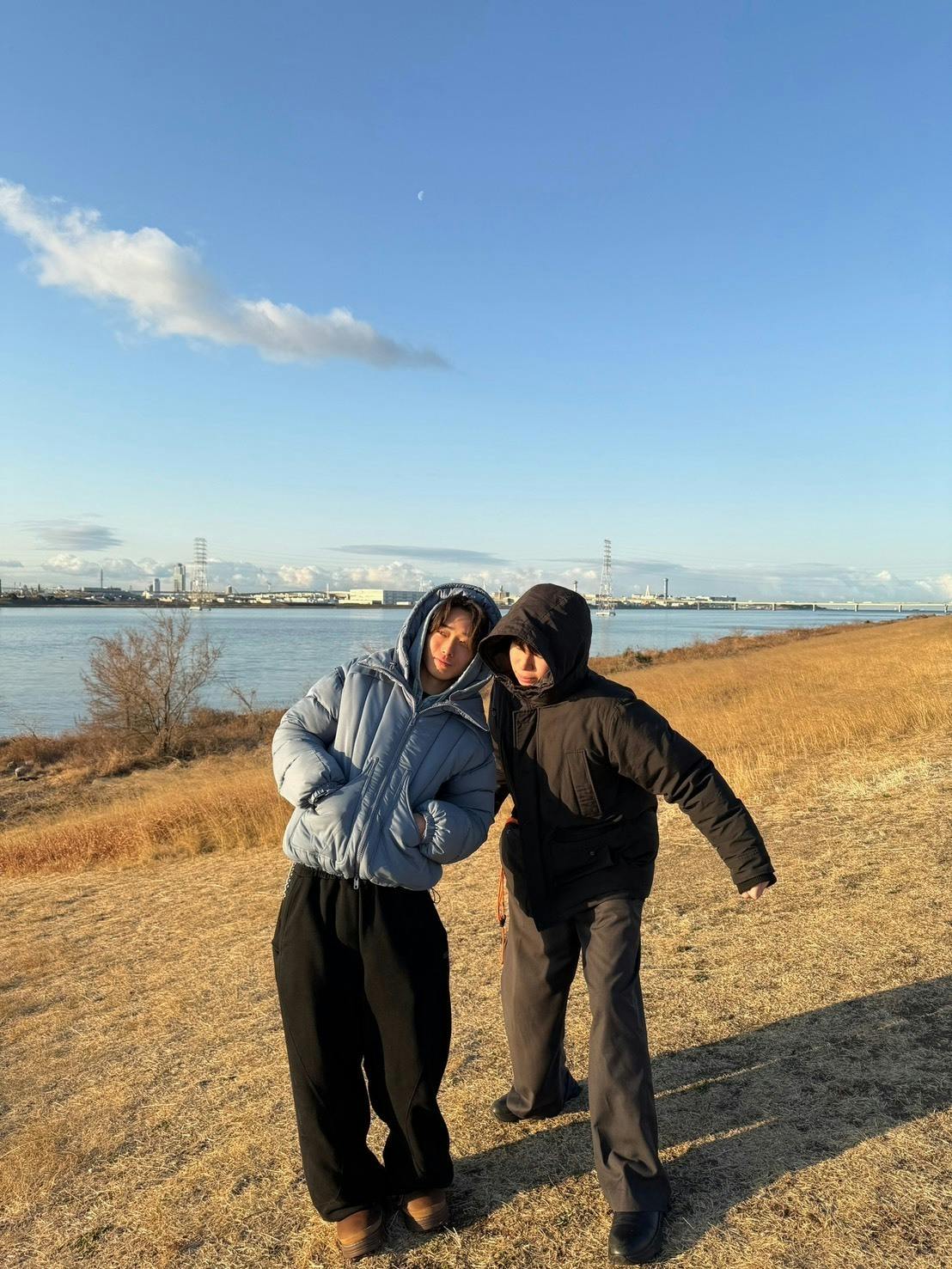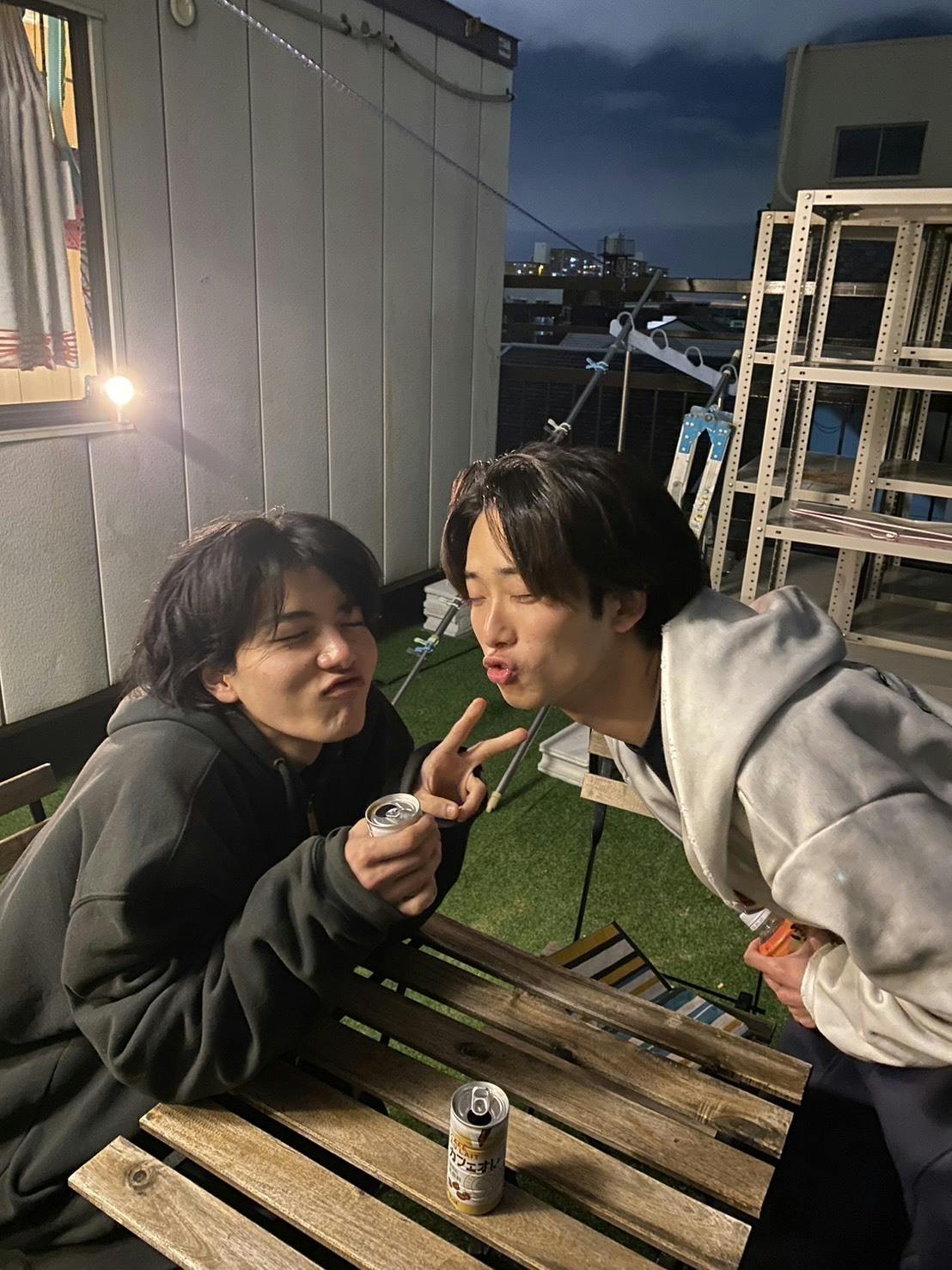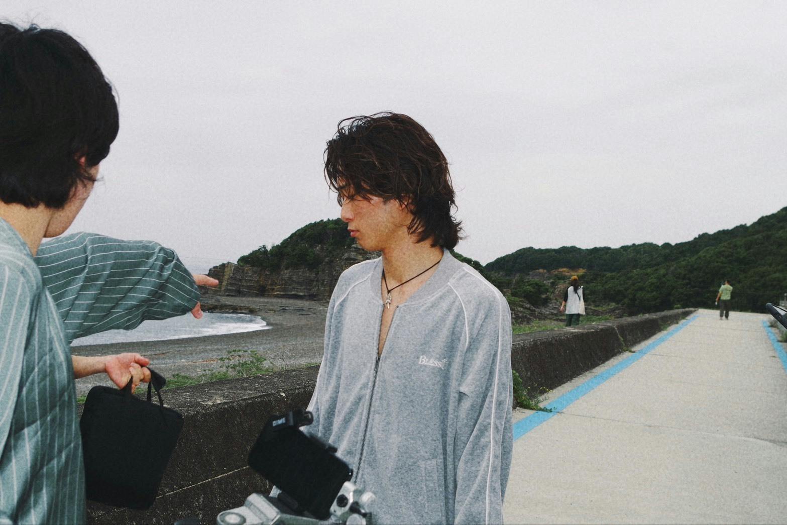 コロナ禍だったこともあり撮影まで会うことはできずずっとオンライン。クランクインは初対面で勢いのままカラオケに行くというシーン、実際にその撮影が初対面でした。彼は今よりも短い髪で、今よりももう少し少年らしい目つき。タメロで良いと散々言ってるのに、いつまでも敬語が抜けないひとつ年下の彼は、連日続く怒涛の撮影をずっと楽しんでくれていました。その撮影は確かに言葉にするなら"青春"そのもので、毎日みんなでああだこうだ騒ぎながら、何が起こるか分からない、実に能動的な半年間でした。駆け抜けるように時間が過ぎて、長かったようで短いその撮影が終わりました。あんなにも終わるのが寂しい映画もなかなかなかった。