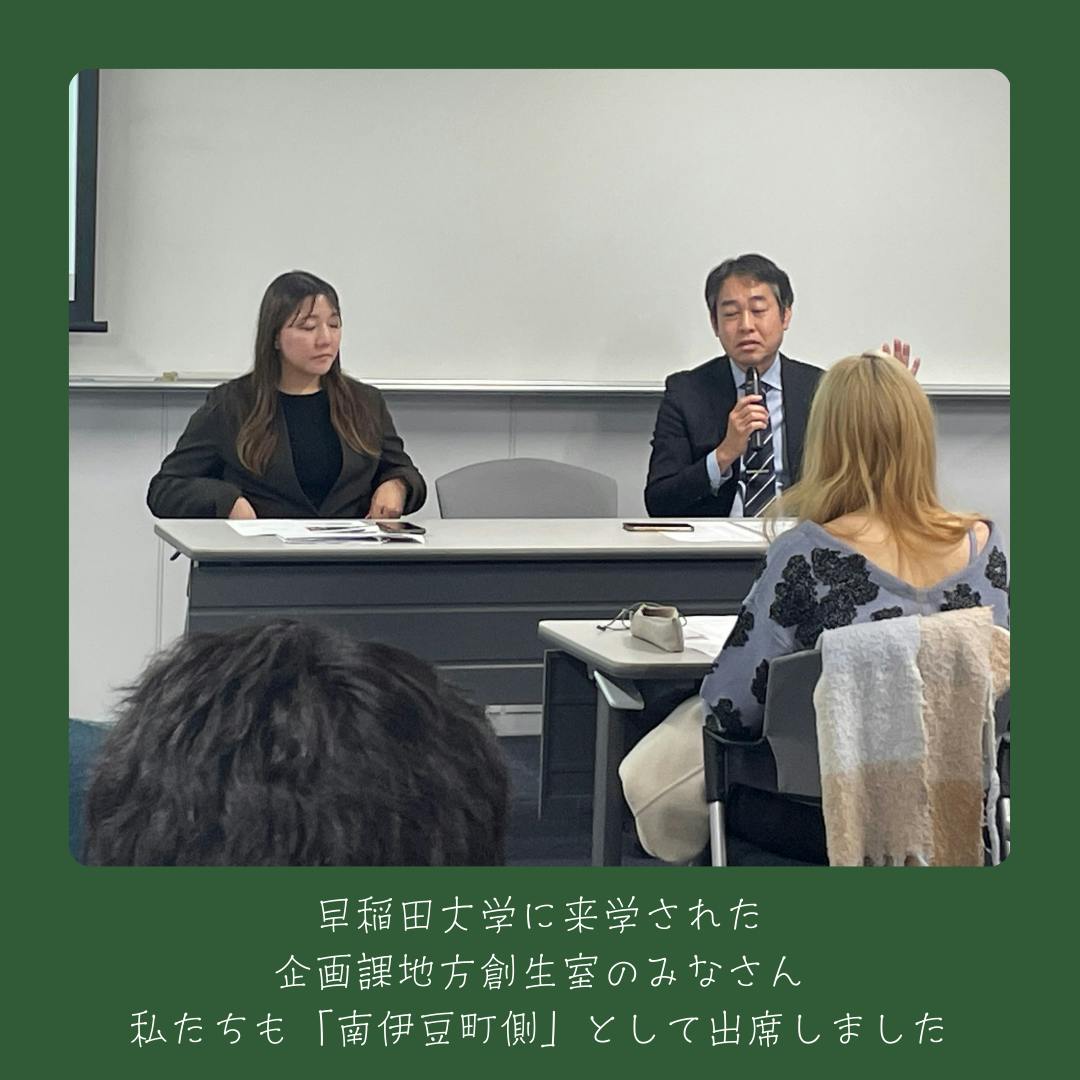 2025.1 2024年度早稲田大学地域連携ワークショップの開始に伴い、南伊豆町役場企画課地方創生室のみなさんが早稲田大学へ来学されました。メンバーが南伊豆町側として、ワークショップオリエンテーションに出席しました。