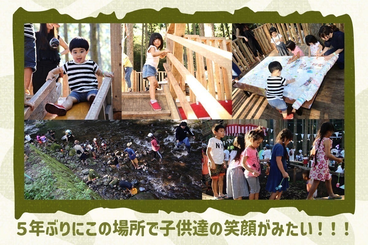 初めの第1回目から第2回目までは、公園など公共的なところで開催しましたが、第3回目から"地球上のすべての場所が遊び場"という想いから、限界集落の横にある森に手を加えさせていただき、森の中を会場として開催しております。