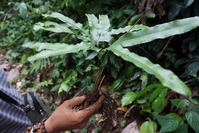 ”アタ”とはインドネシアのフローレス島、スラウェシ島、カリマンタン島、スンバ島、ロンボック島に自生するシダ科のつる植物です。栽培をしても育ちません。これらの”アタ”をジャングルに入り、次の工程で作業がすすめられます。すべて手作業です。