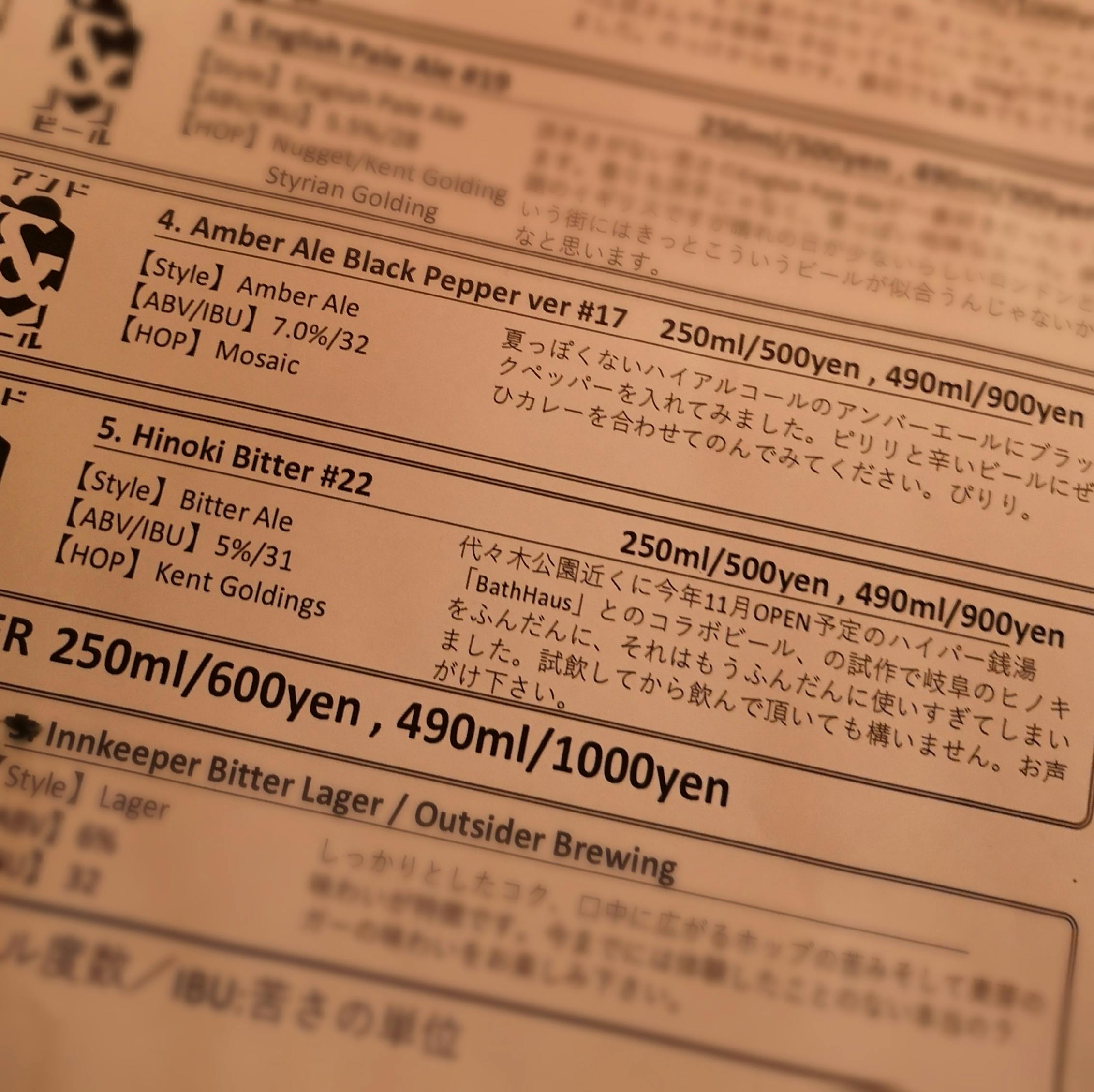 アンドビールで絶賛試作中のBathHausコラボビール、Hinoki Bitter。