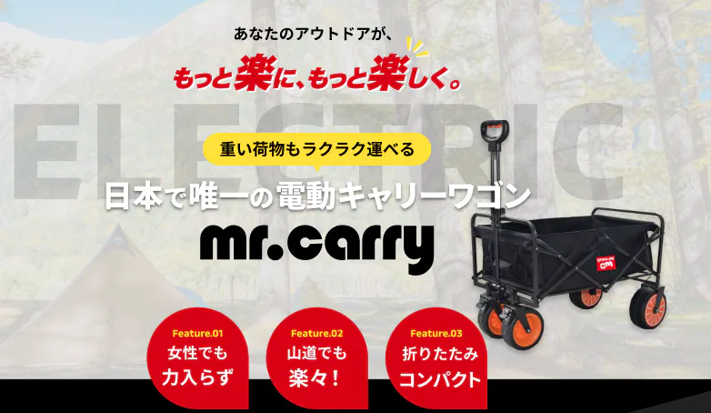 2025/03/19 15:21【ご報告】多数メディアにて弊社プレスリリースが掲載されました!みなさま、こんにちは!このたび、弊社の最新プロジェクトに関するプレスリリースが、多数のメディアに取り上げられましたのでご報告です!現在、クラウドファンディングサイト「CAMPFIRE」にて先行予約受付中の 電動キャリーワゴン「Mr.Carry(ミスターキャリー)」。このプロダクトについてのプレスリリースが、多方面のメディア様でご紹介いただいております。▼掲載された主なメディア一覧【@Press】「最大80kgの荷物を自動で運ぶ電動キャリーワゴンを開発」【物流ニュース ロジスティクス・トゥデイ】エッコ、最大80kg運べる電動キャリーワゴン開発【Newsweek日本版 プレスリリース】キャンプや配送現場で活躍、電動キャリーワゴン「Mr.Carry」【日本経済新聞 電子版(NIKKEI COMPASS)】日経コンパス掲載ページはこちら皆さまのおかげで、このように多くのメディアに取り上げていただくことができました。本当にありがとうございます!CAMPFIREにて先行予約受付中!「Mr.Carry」は、最大80kgまでの荷物を電動でラクに運べる新時代のキャリーワゴンです。アウトドア・イベント・農作業・配送業務など、あらゆるシーンで大活躍。坂道でも未舗装地でも快適に運搬できます。現在、クラウドファンディングサイト【CAMPFIRE】にて先行予約販売中ですので、ぜひチェックしてみてください! もっと見る支援者の皆さま、ありがとうございます!