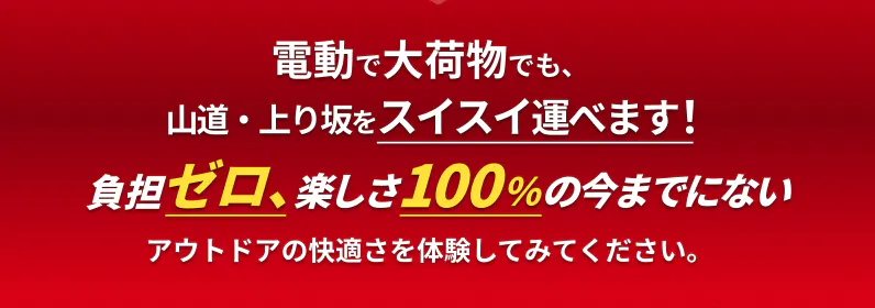 最大500Wのモーターを搭載し、重い荷物も軽々と運べます。坂道や悪路でも安定した走行が可能で、アウトドアでの荷物運びが快適になります。