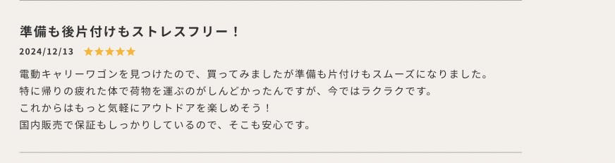 ✅ キャンプやアウトドアが好きな方 → 荷物の運搬が楽になり、より快適に楽しめます。