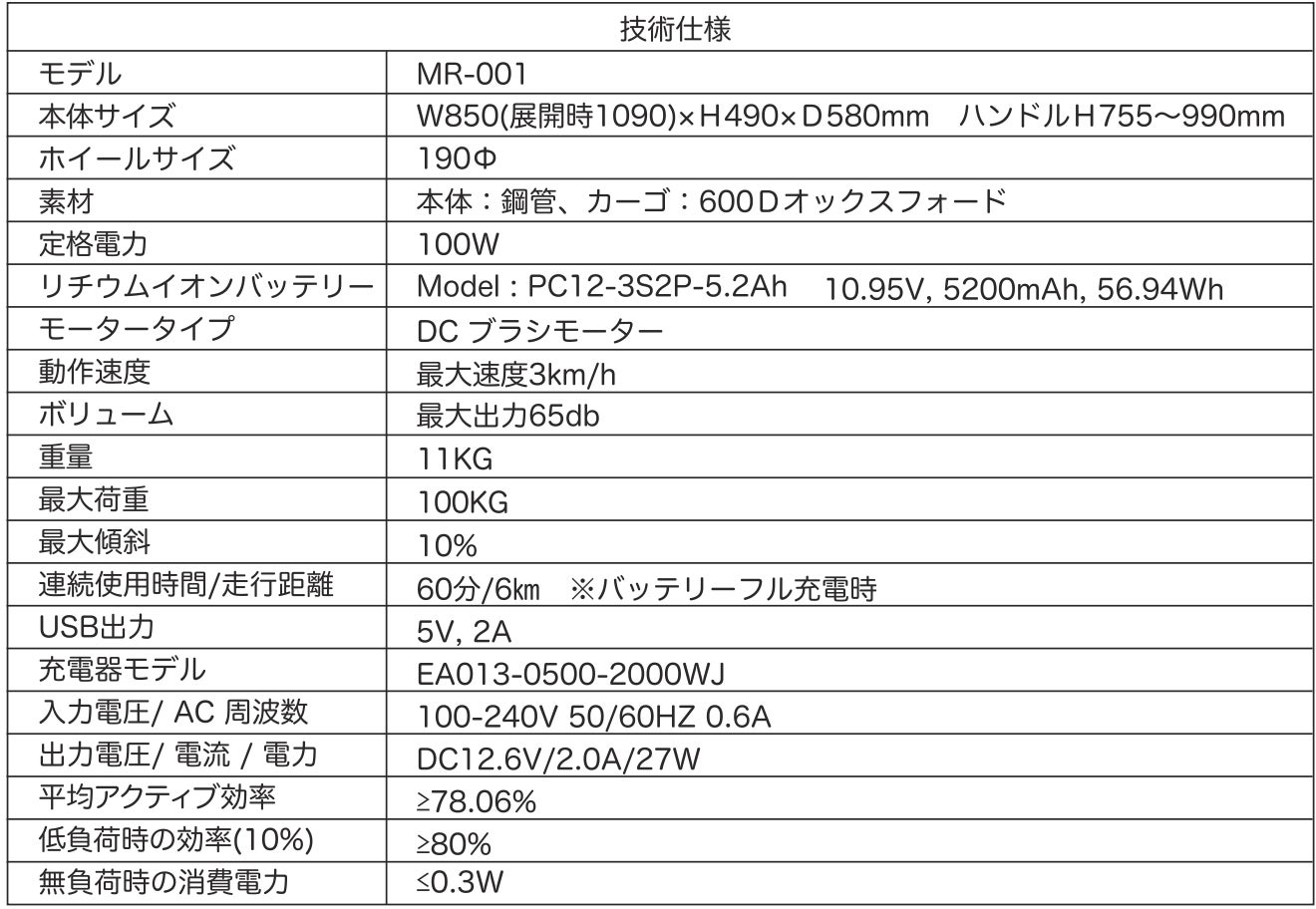 電動キャリーワゴン特性
