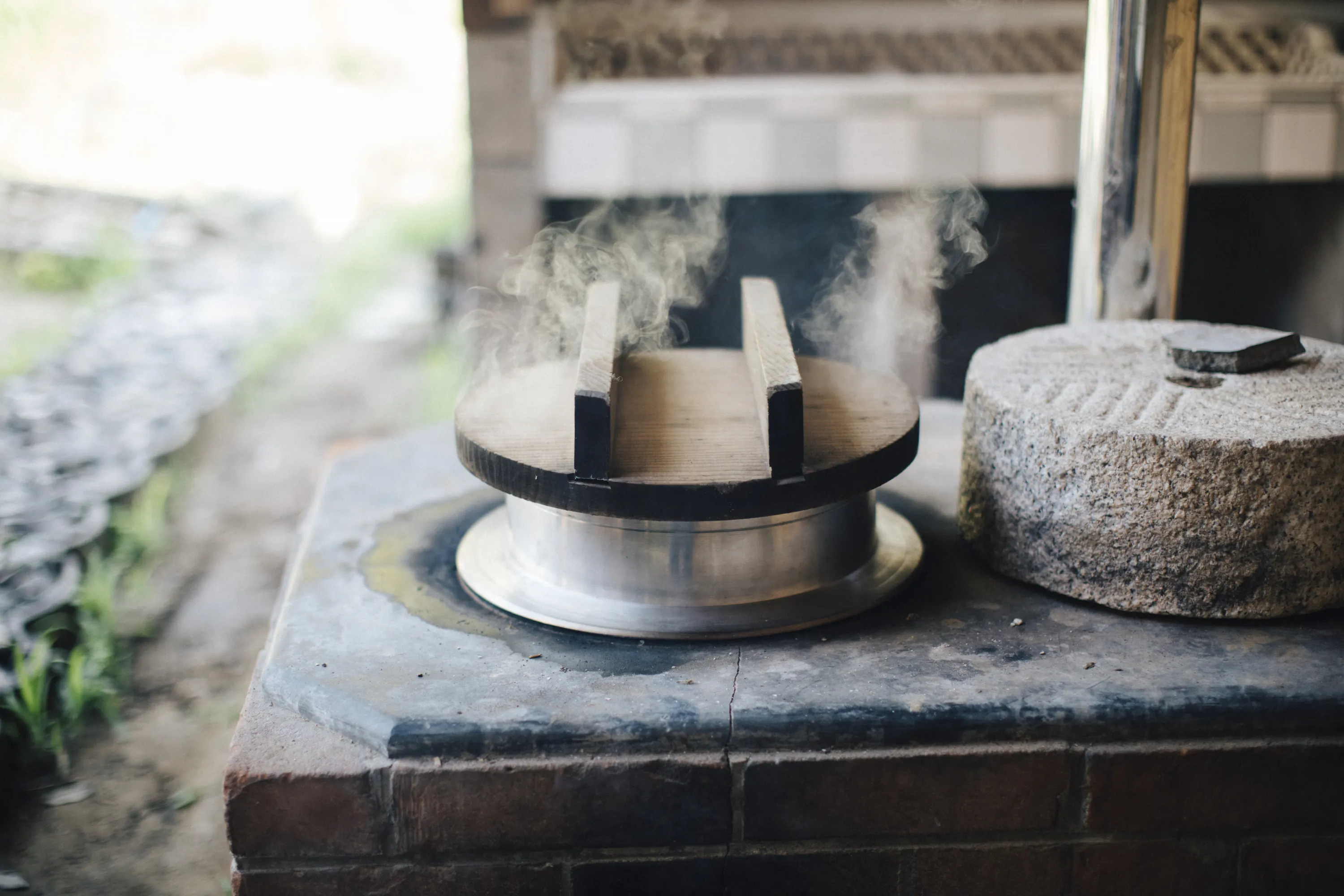 朝ごはんはカマド炊きご飯