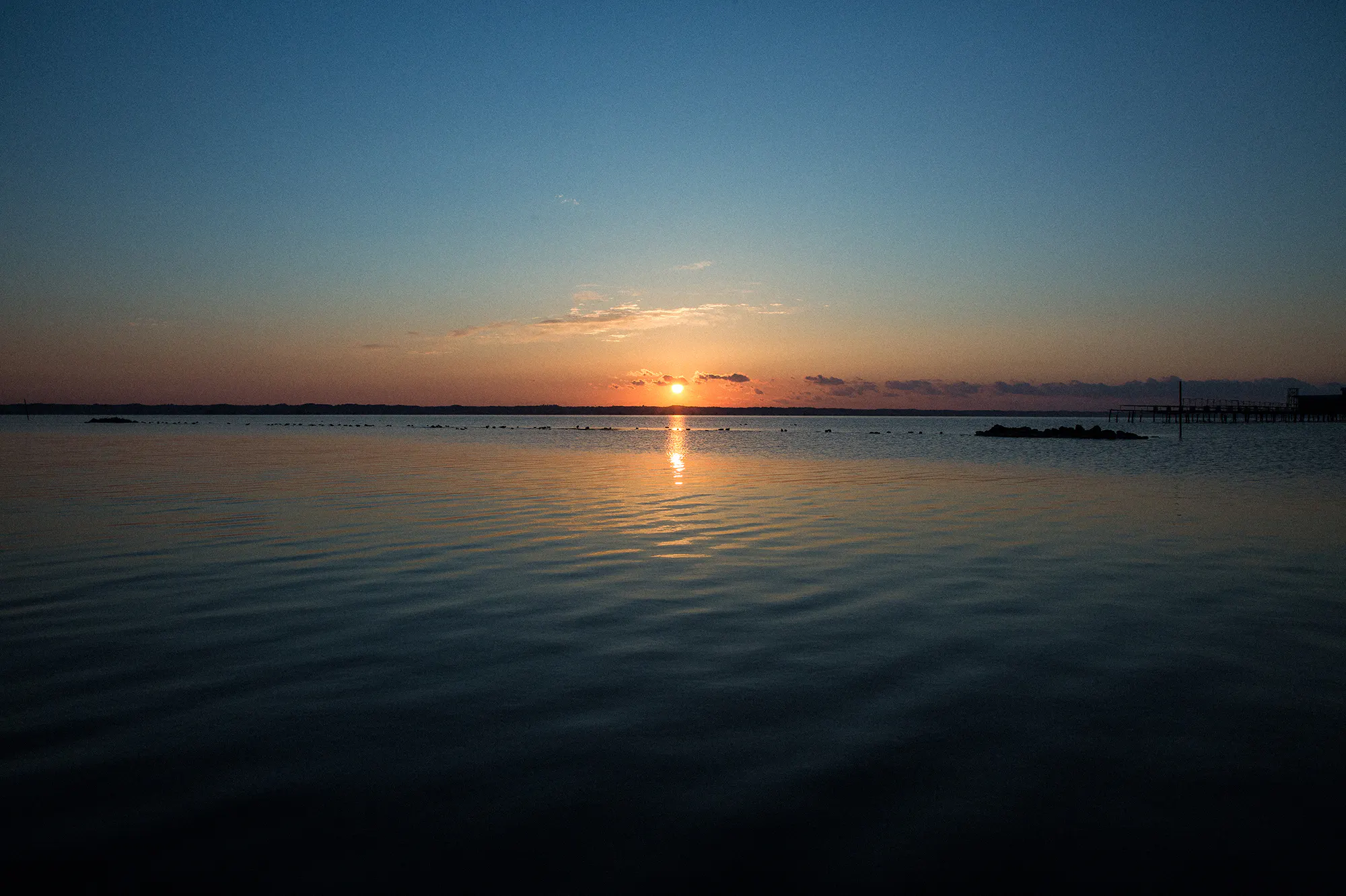 早朝、天気が良ければ広大な湖の水平線にのぼる朝日を見ることもできます。