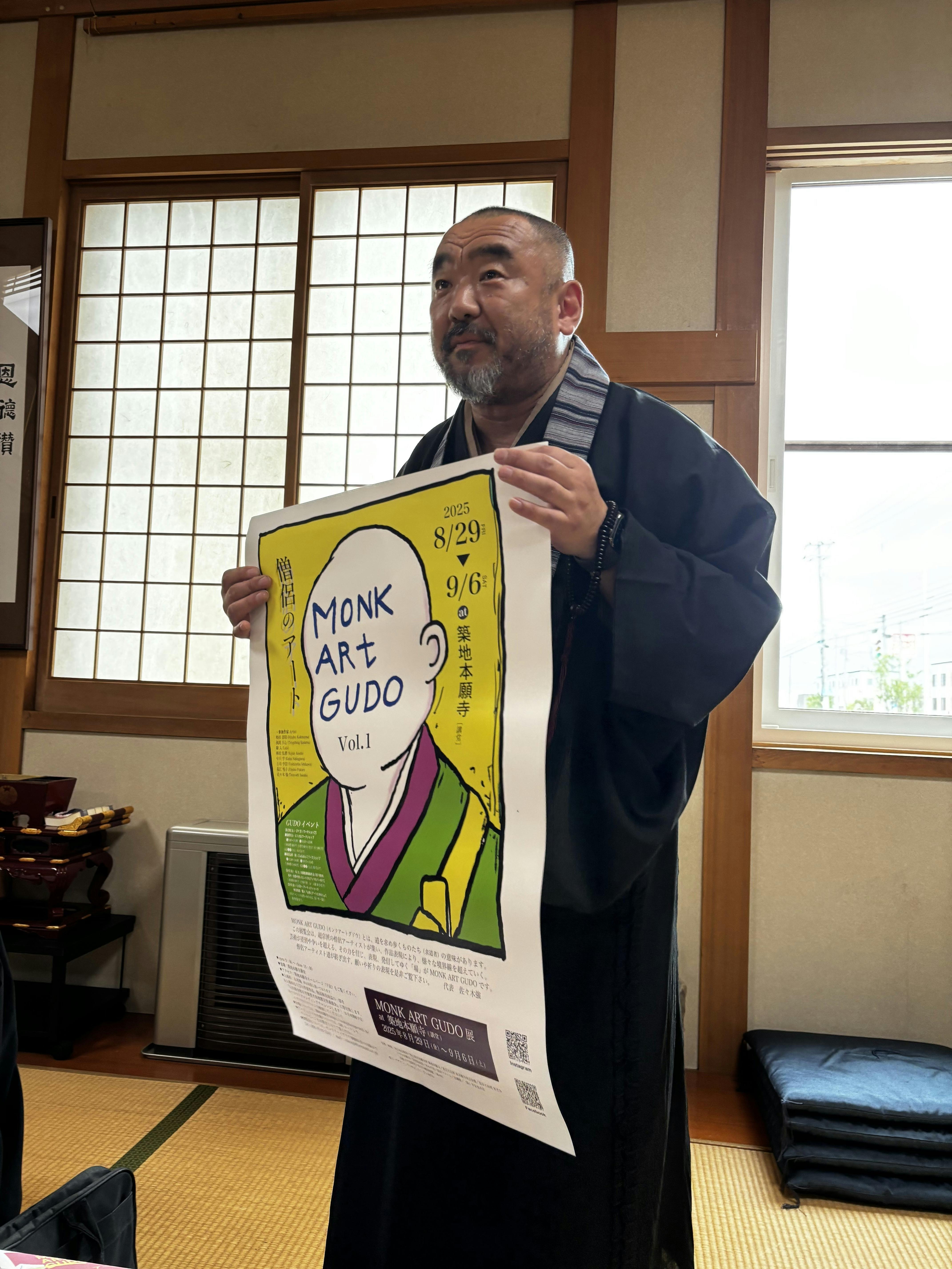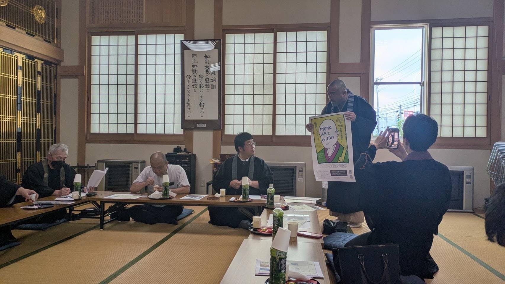 先輩住職たちの前で、緊張しましたが、グドウ展の主旨、開催の意図や経緯をお話しさせて頂きました!