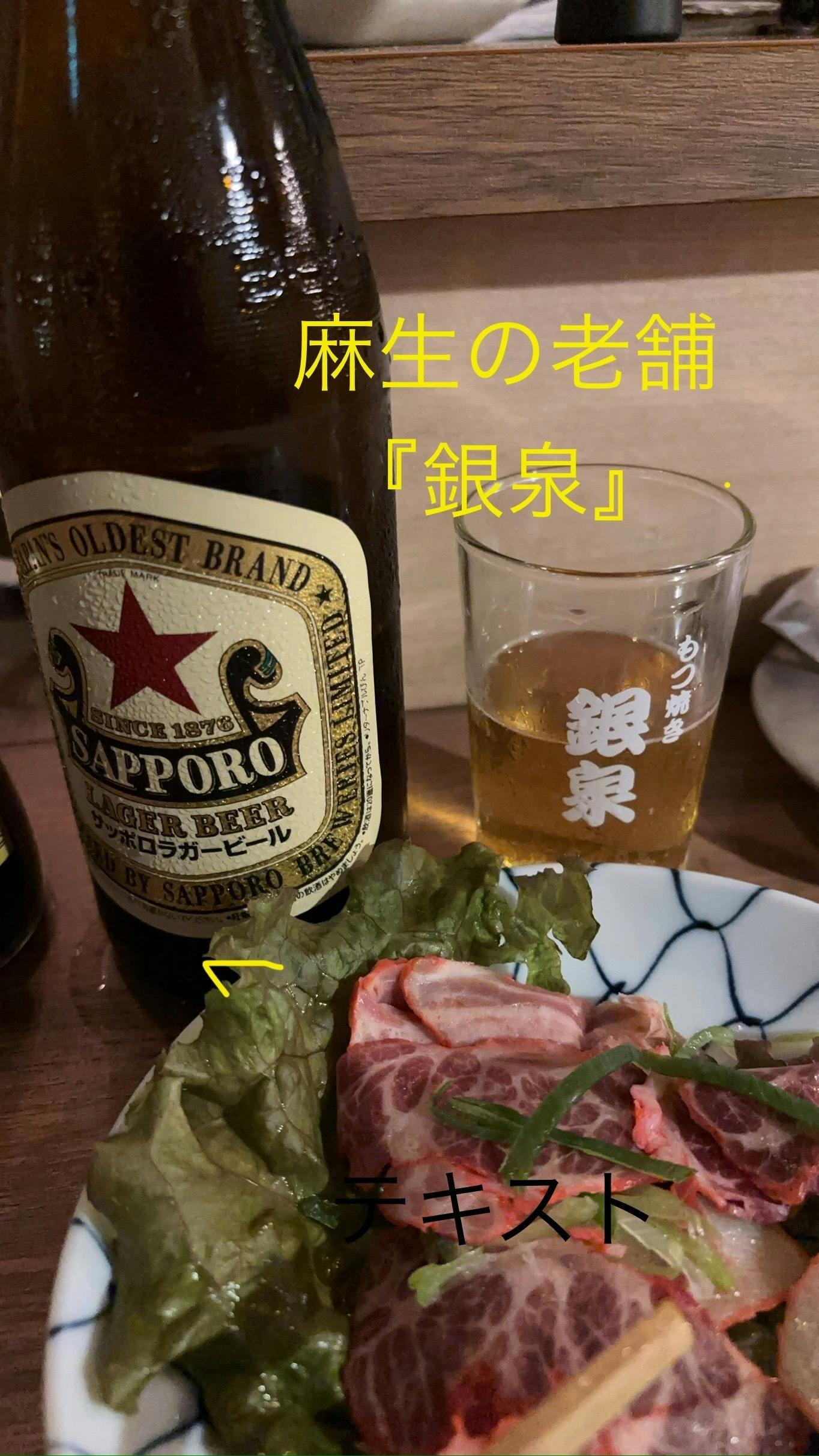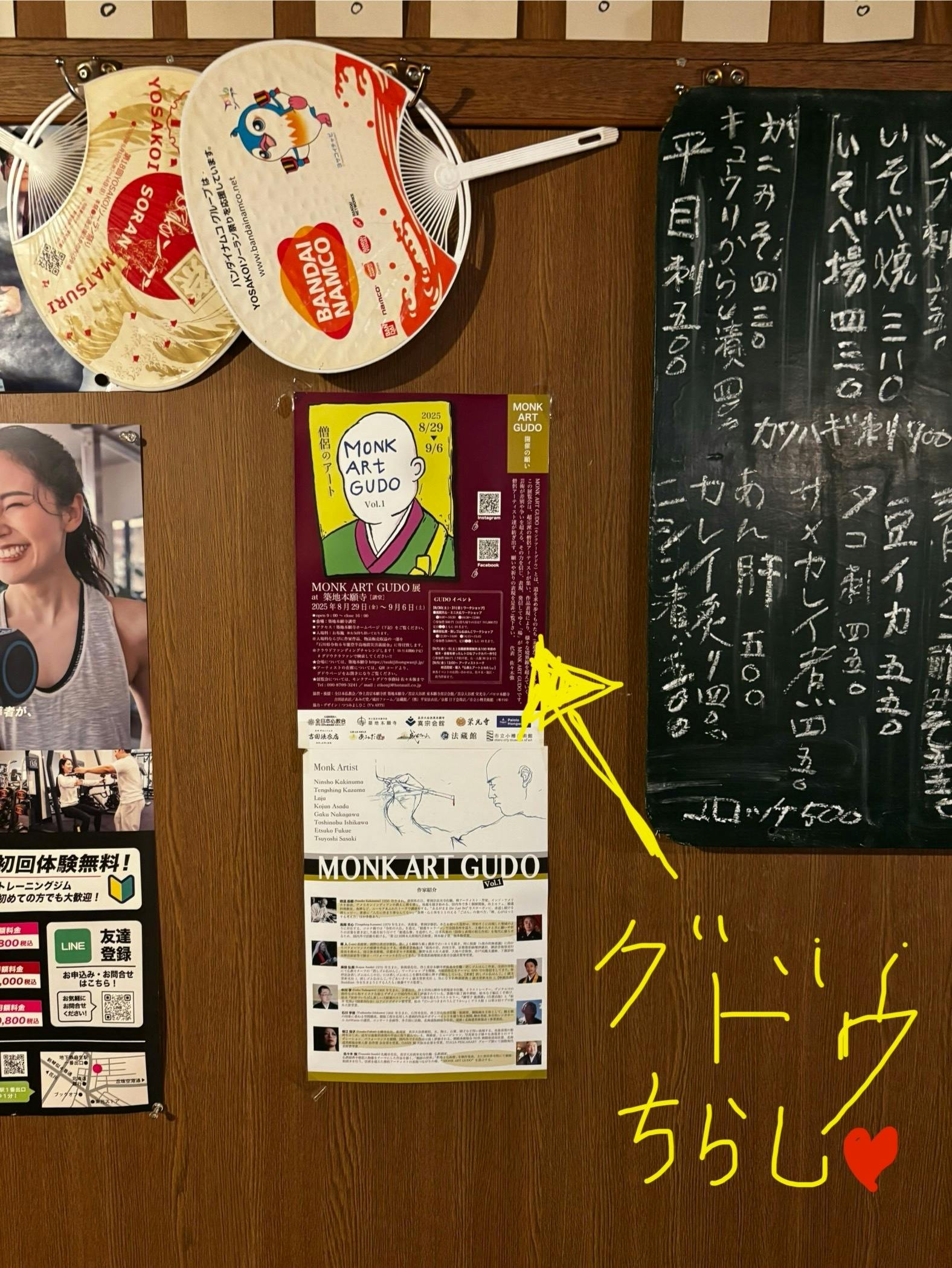 【宣伝活動〜‼︎】札幌は北区麻生の老舗もつ焼き『銀泉』さんに、グドウ展宣伝⁈にまいりました‼︎ 60年以上、麻生で店を構えている老舗(一昨年に移動リニューアル)。同級の大将が焼いてるんです‼︎本当に何食べても美味い‼︎
