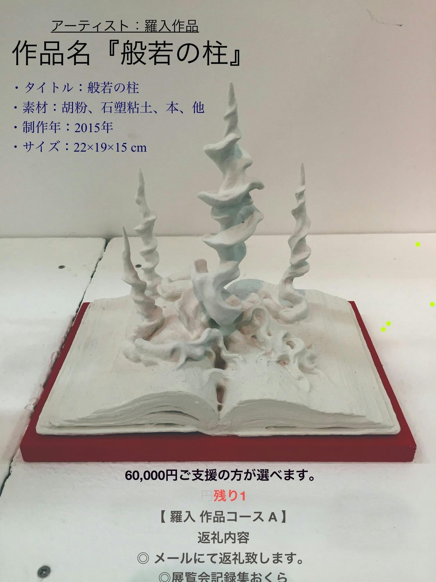 グドウ展クラファンでは、ご支援頂いた返礼品にアーティストの作品をご用意しております。そのなかでも、ひときわ異彩を放ち、目を引く作品は羅入氏の「般若の柱」です!