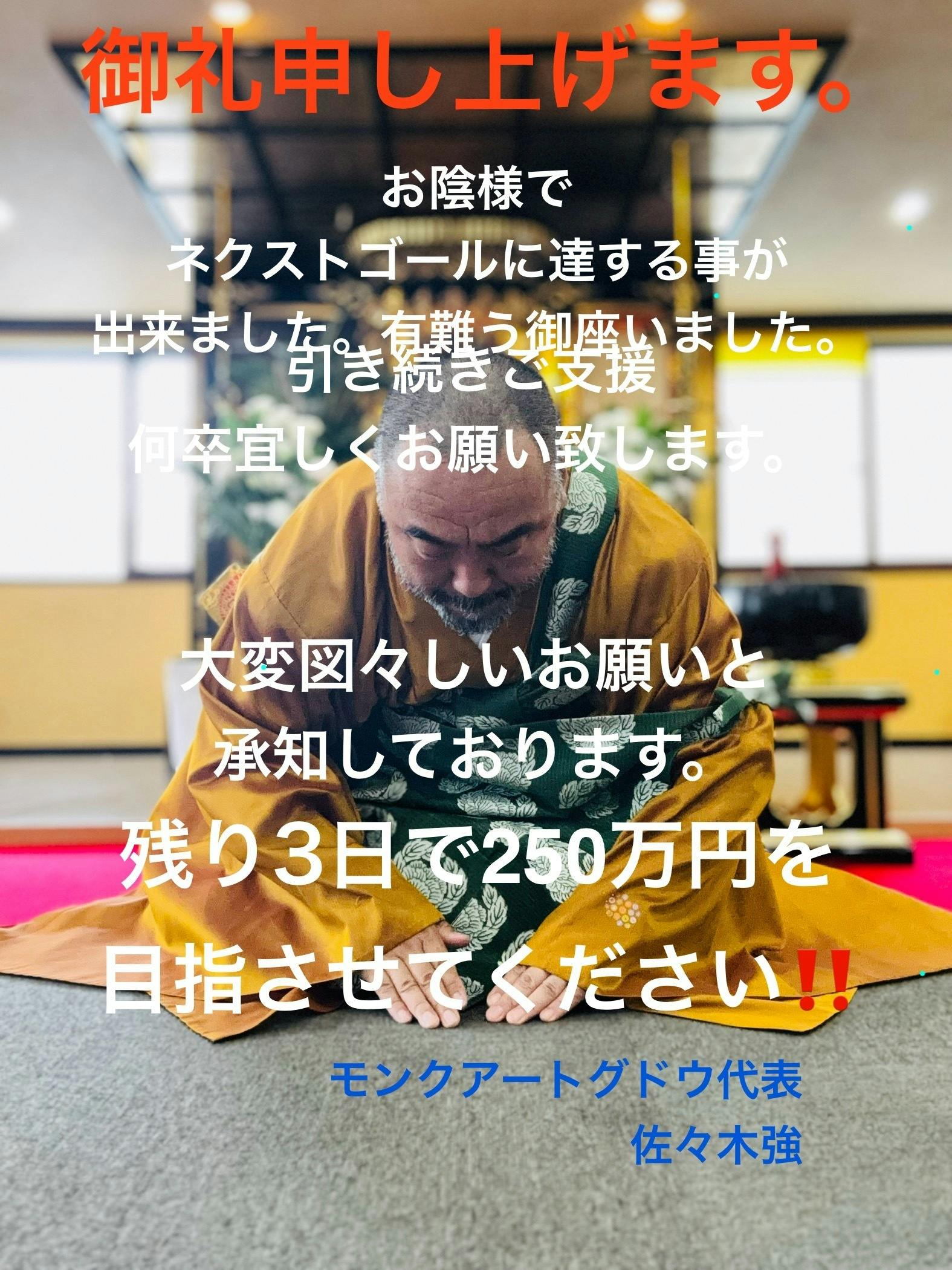 残りわずかとなりましたが、次回開催を実現したく、あらためて250万円を目指したく存じます。