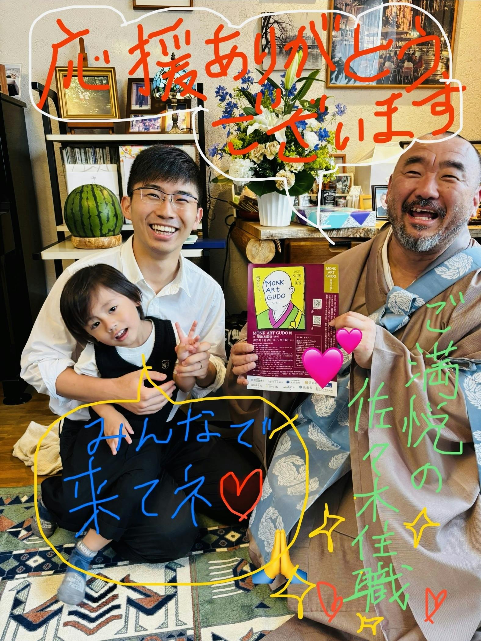 展覧会にも協賛いただいている仏壇店社長の松尾拓也氏から、「MONK ART GUDO」プロジェクトに応援メッセージをいただきました!「有限会社三愛では、お墓や仏壇を通じて“祈りのかたち”を届ける企業として、モンクアートグドウ展の趣旨に深く共感し、この度協賛させていただきました。仏教とアートの融合が、現代に生きる私たちの心にも静かな光を灯すことを願っております。」松尾拓也(まつおたくや)プロフィール:石狩市(デザイン墓石とモダン仏壇のお店 有限会社 三愛 、インテリア仏壇いのりや 代表取締役) 著作『「おふたりさまの老後」は準備が10割』東洋経済新報社
