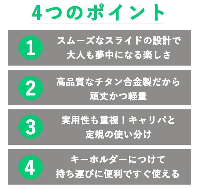精密な測定が求められるエンジニアやジュエリーデザイナーなど、プロフェッショナルの方には最適なツールです。また、木工や模型製作など、趣味で頻繁に寸法を測るDIY好きにもおすすめです。さらに、軽量で耐久性が高く、携帯しやすい設計はアウトドアや日常使いにぴったりです。コンパクトで機能的なツールを好むEDC好きにとっても理想的なアイテムです。