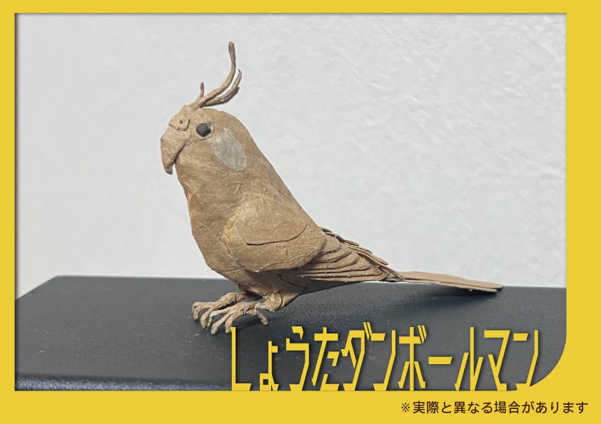 素材はダンボールのみ!完全無着色!素材のもつ風合いを生かしインコちゃんの特徴を丁寧に表現しています。