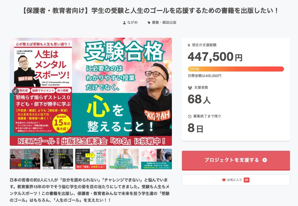 クラウドファンディング開始から29日が経過し、現在68名のあなたから447,500円のご支援をいただいております!