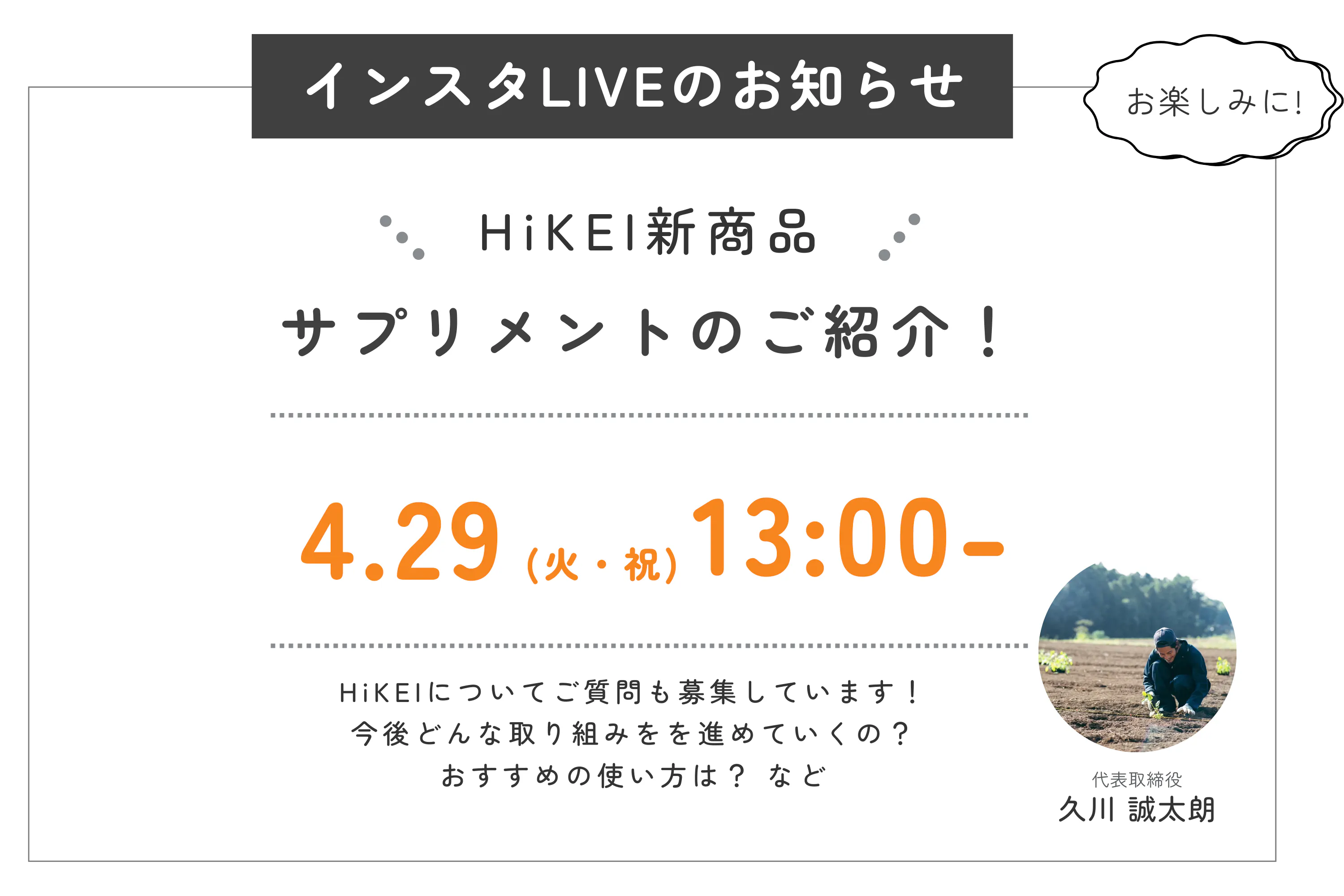 最後に(HiKEI代表・久川よりメッセージ)