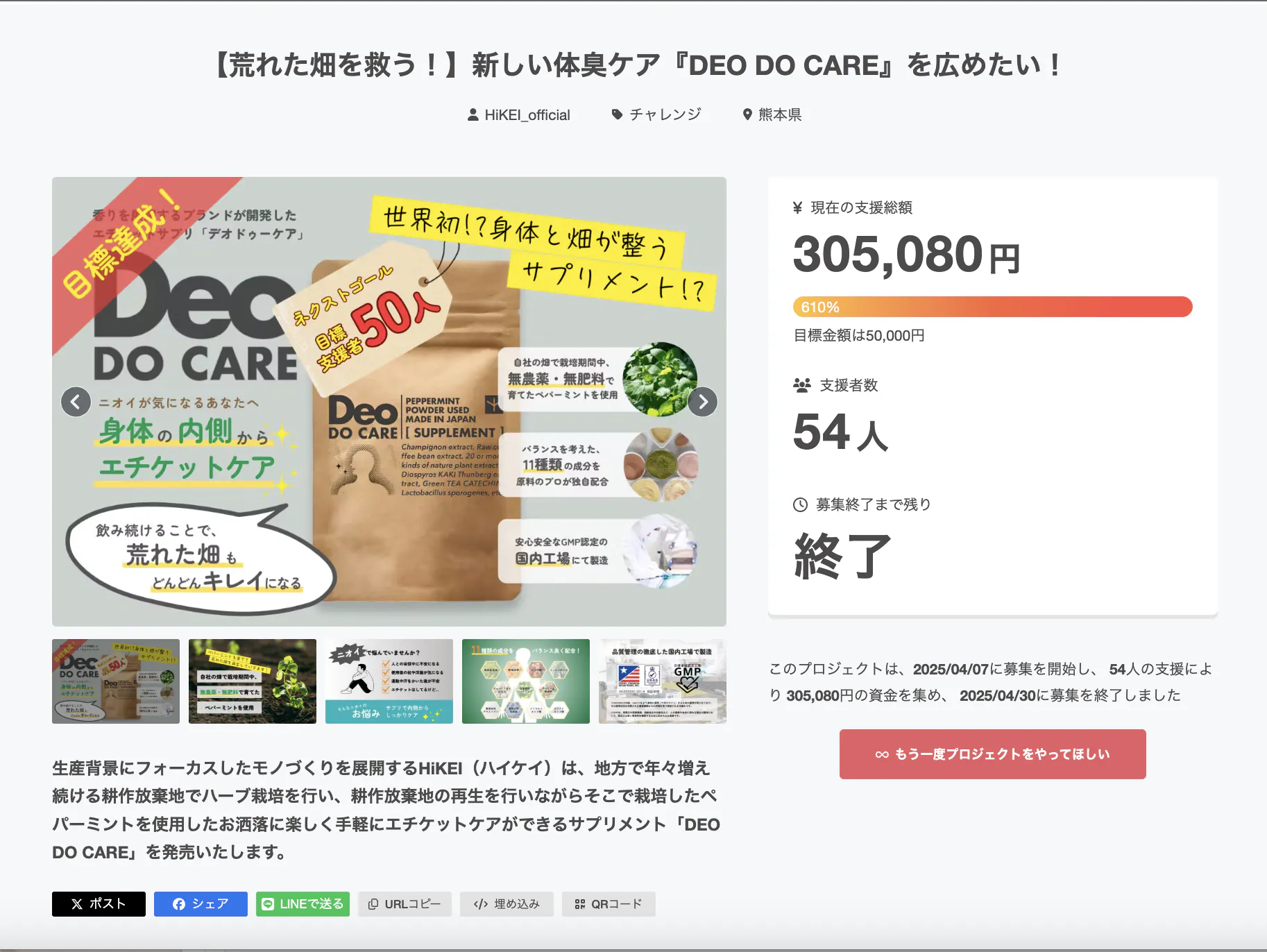 Deo DO CARE クラウドファンディング終了のご報告と御礼