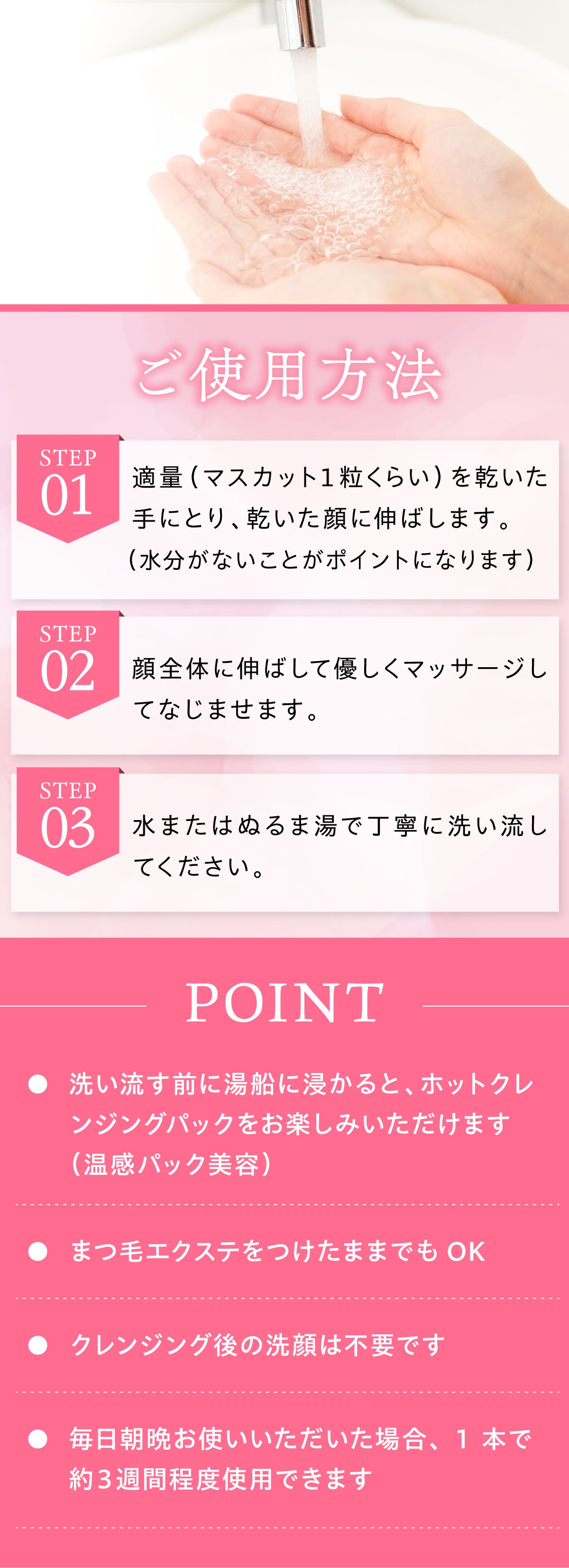 肌本来のうるおい成分を洗い流さないこと。
