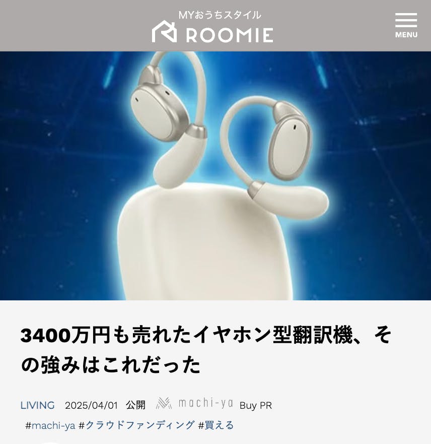 ROOMIE(ルーミー)様「3400万円も売れたイヤホン型翻訳機、その強みはこれだった」