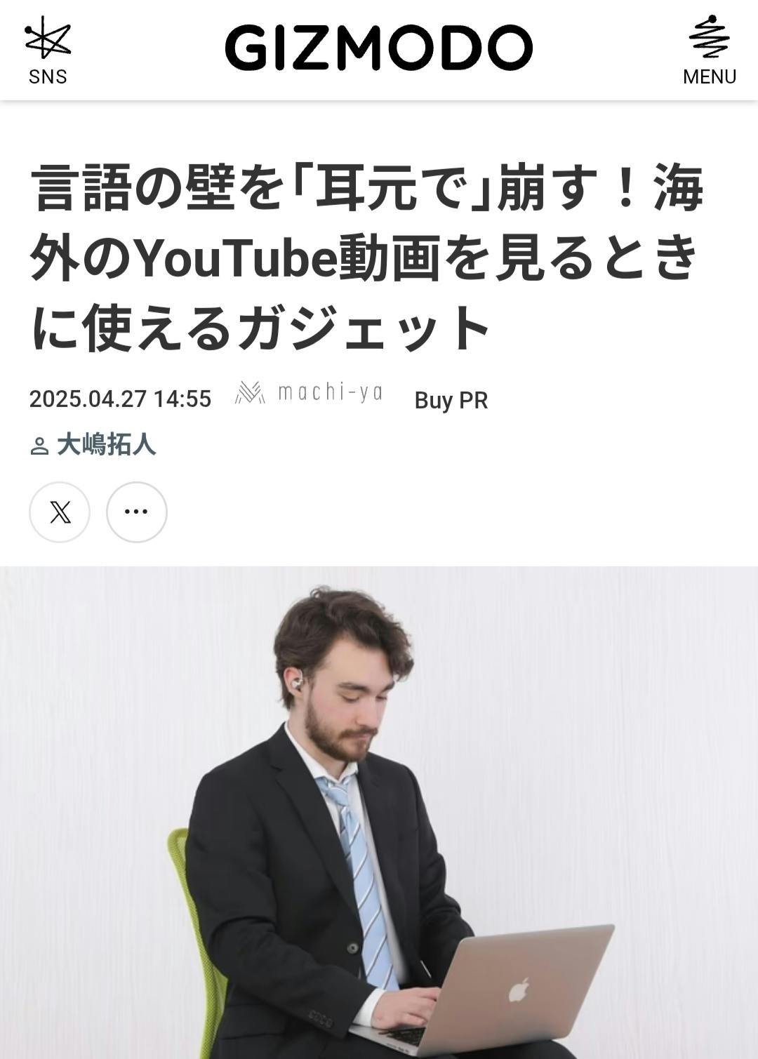 ▼ギズモード様「言語の壁を「耳元で」崩す!海外のYouTube動画を見るときに使えるガジェット」▼