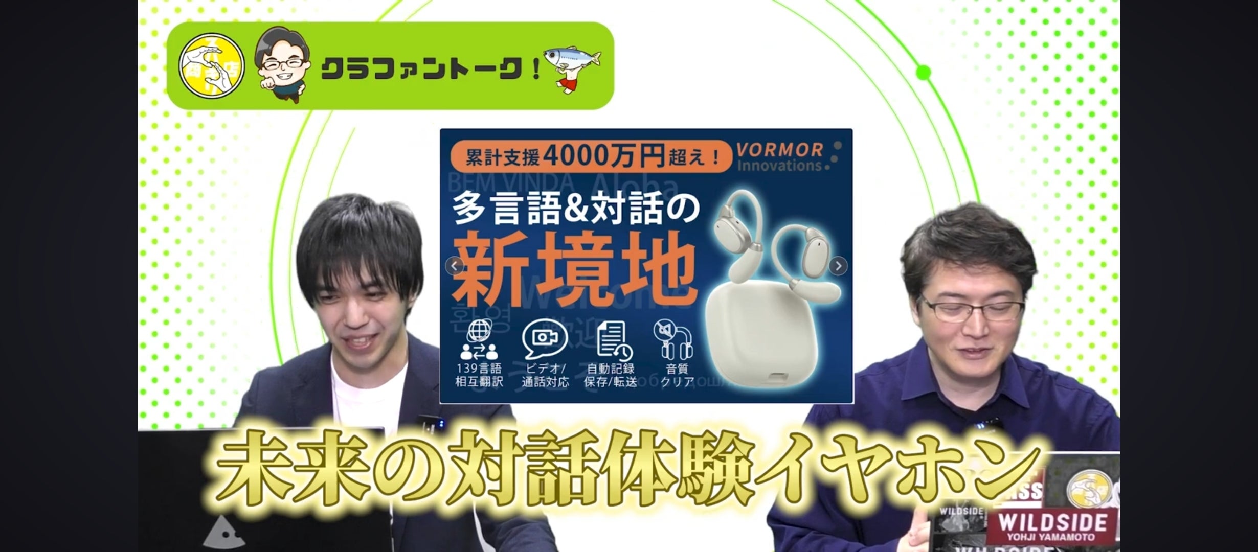 この度、クラウドファンディング業界のトップランナーであるスバキリ商店株式会社(代表取締役:小西光治氏)の人気YouTubeチャンネル「クラファントーク」において、弊社が展開中のAIスマート翻訳イヤホン「VORMOR V13」が注目プロジェクトとして特集されました