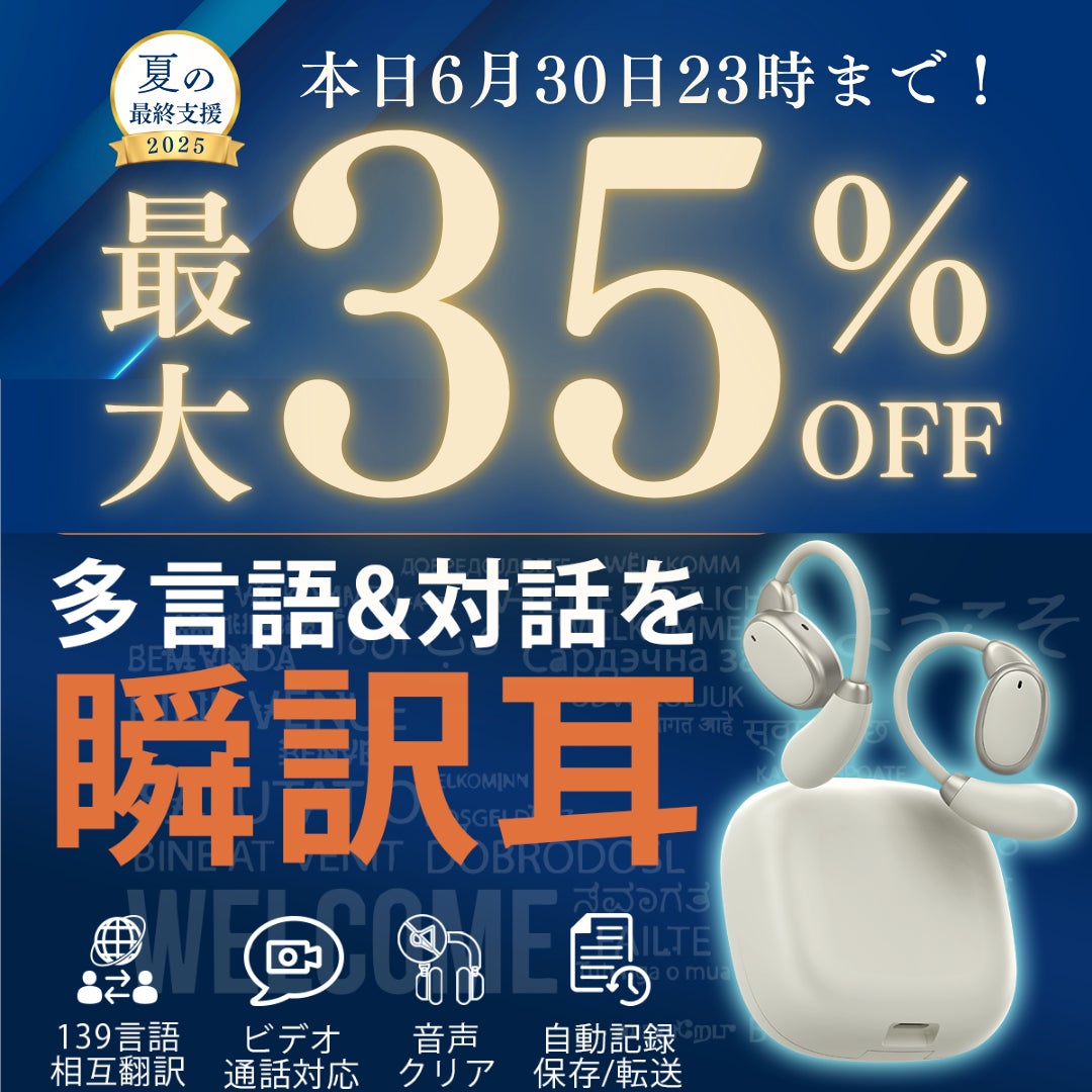 最短0.3秒の高速翻訳と最大98%の精度を実現し、会話・動画・通話をシームレスに楽しめるノイズキャンセリング搭載イヤホン型翻訳機!