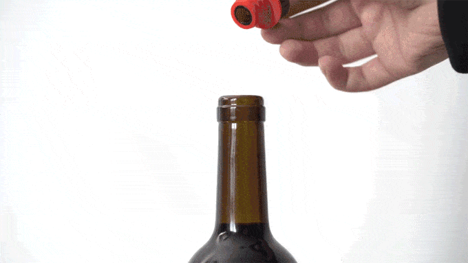 シールカバー/ワインセーバーをつけて、吸気口にSealvoをセットしてボタンを押すだけで自動で真空パック。