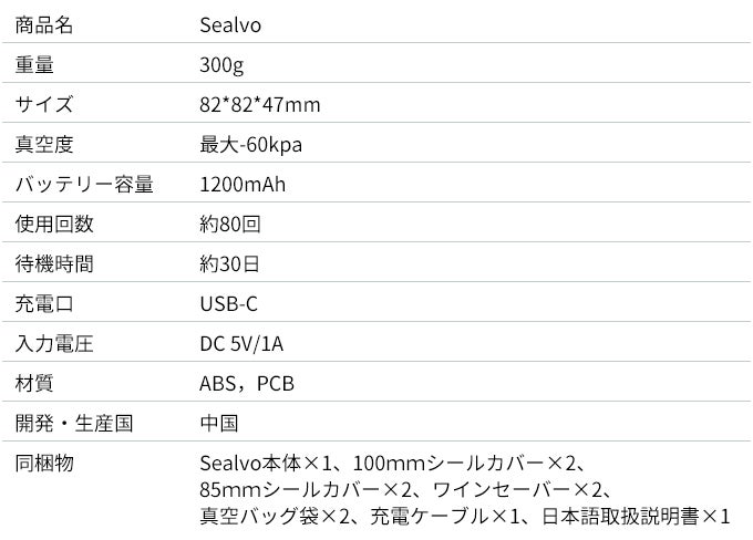 メイソンジャー、真空袋、ワインセーバーに対応しているので、用途に合わせて自在に使えます。