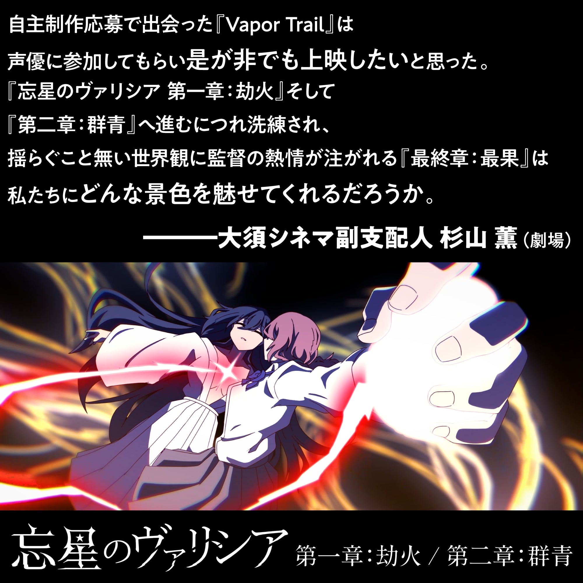遂に『忘星のヴァリシア:第二章:群青』が完成、4月21日(月)より大須シネマ様、5月30日(金)より下北沢トリウッド様ほかにて劇場公開されました。