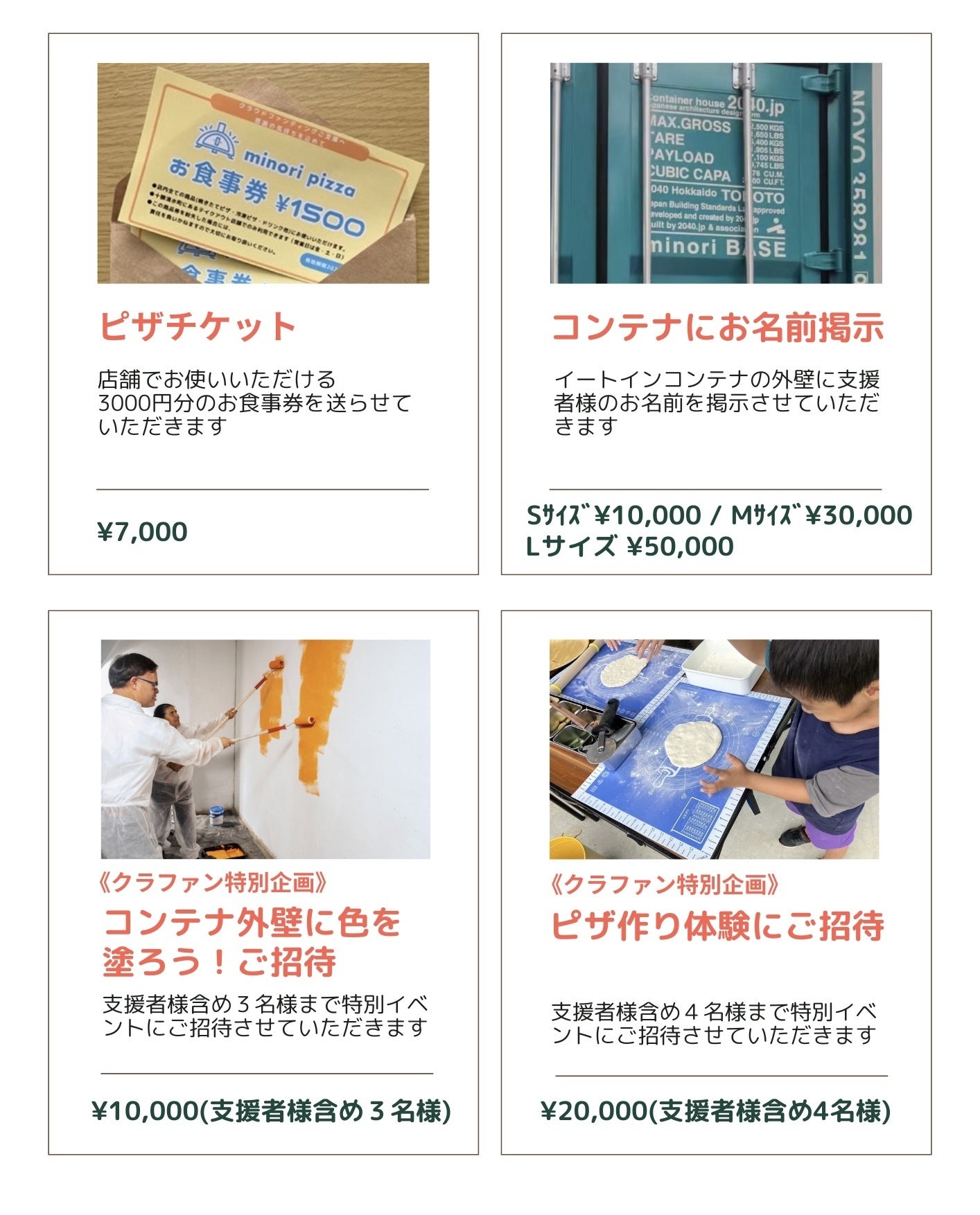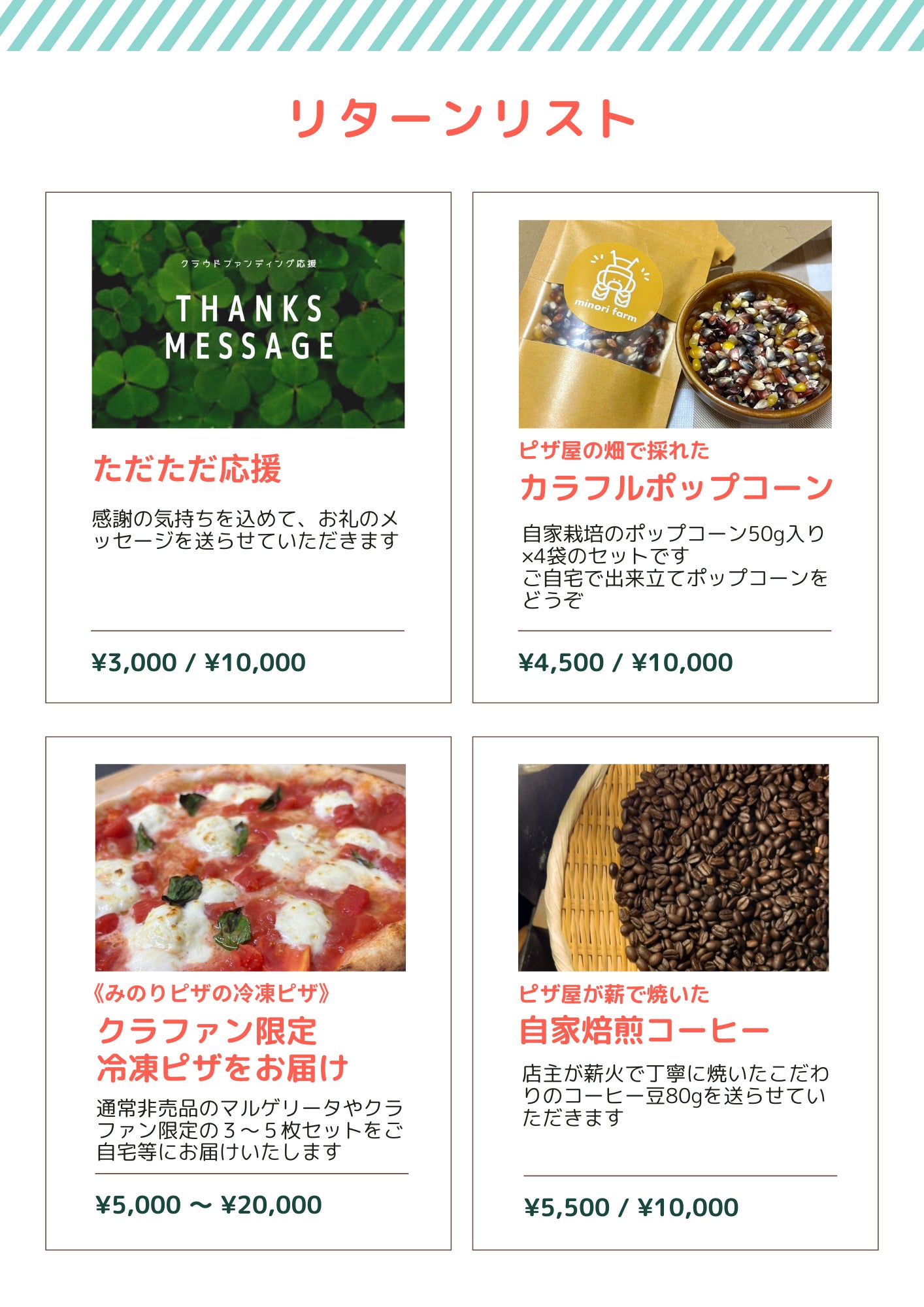 ご支援いただいた皆様には、感謝の気持ちを込めて以下のリターンをご用意しております。