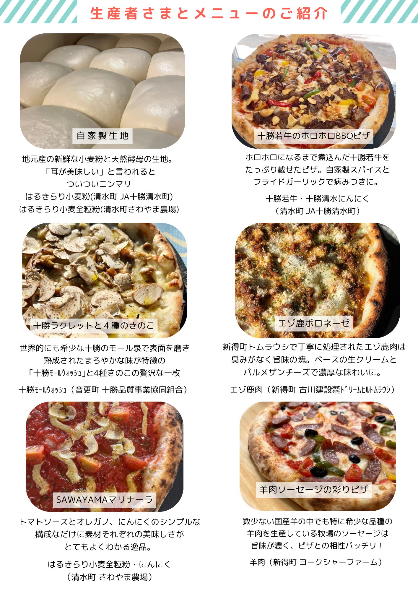 今後も『十勝の農"みのり"をピザにのせて』というコンセプトのもと、食材や生産者のみなさんへの理解を深め、一人でも多くのお客様に発信する努力を続けていきたいと思っています。私たちがピザにのせているのは、単なる”具材”ではなく”生産者の想い”。そう胸を張って語れるようになっていきます。