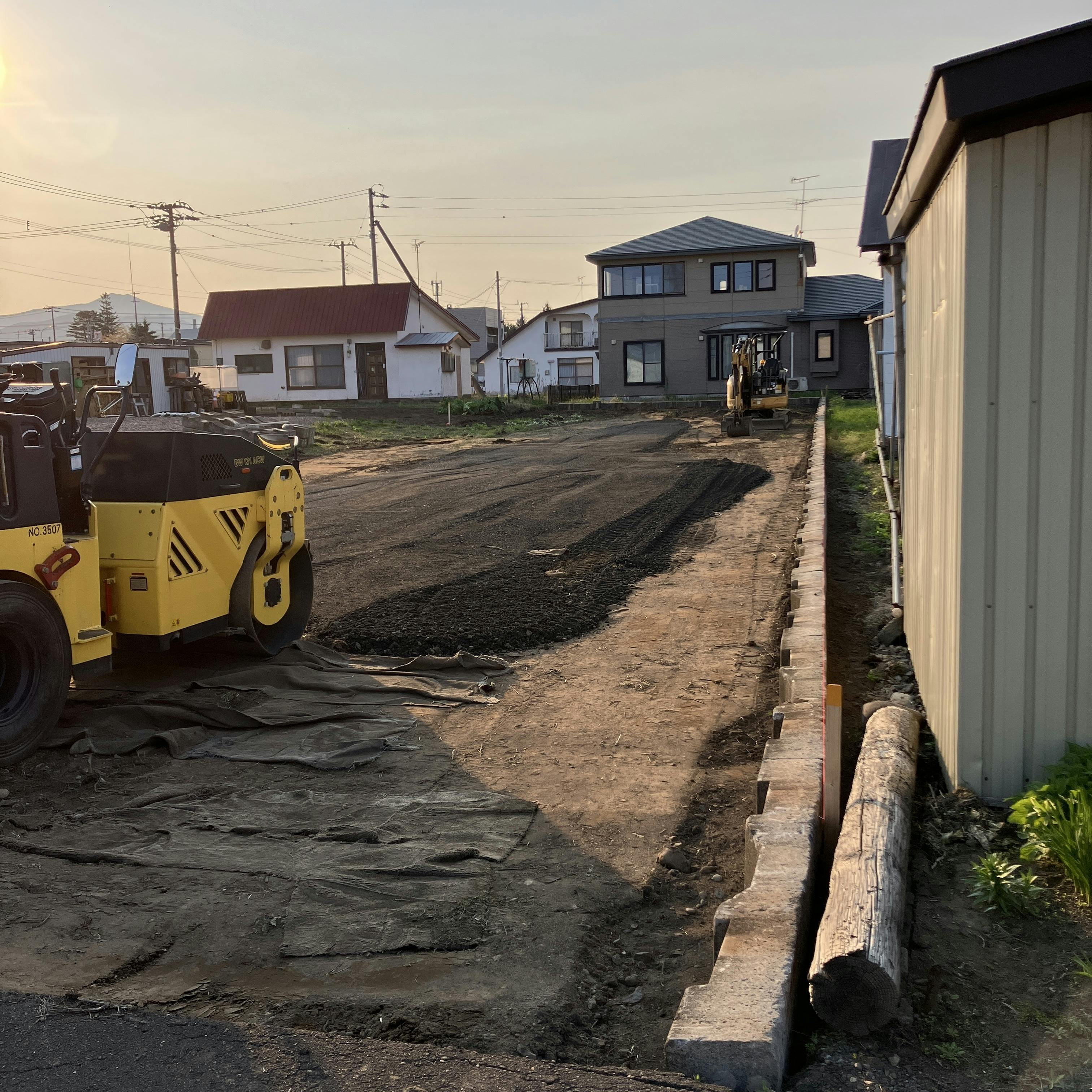 を30本並べました。(あと残り10本)とっても地味ですがとっても大事な作業でした砂利はひとまず14㎥(ダンプ2台分)果たしてあとどのくらい入るのか、かなり入ると思います。