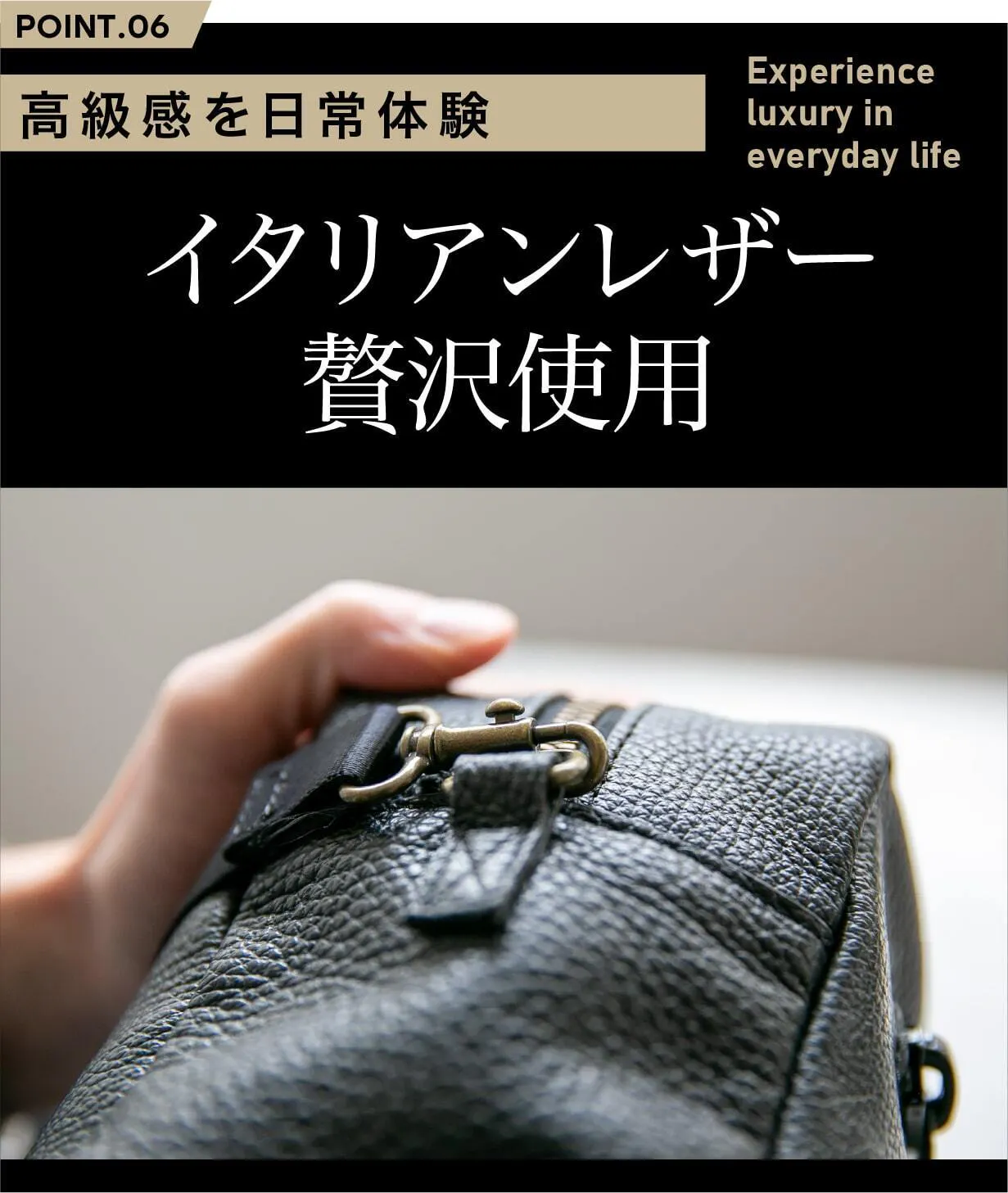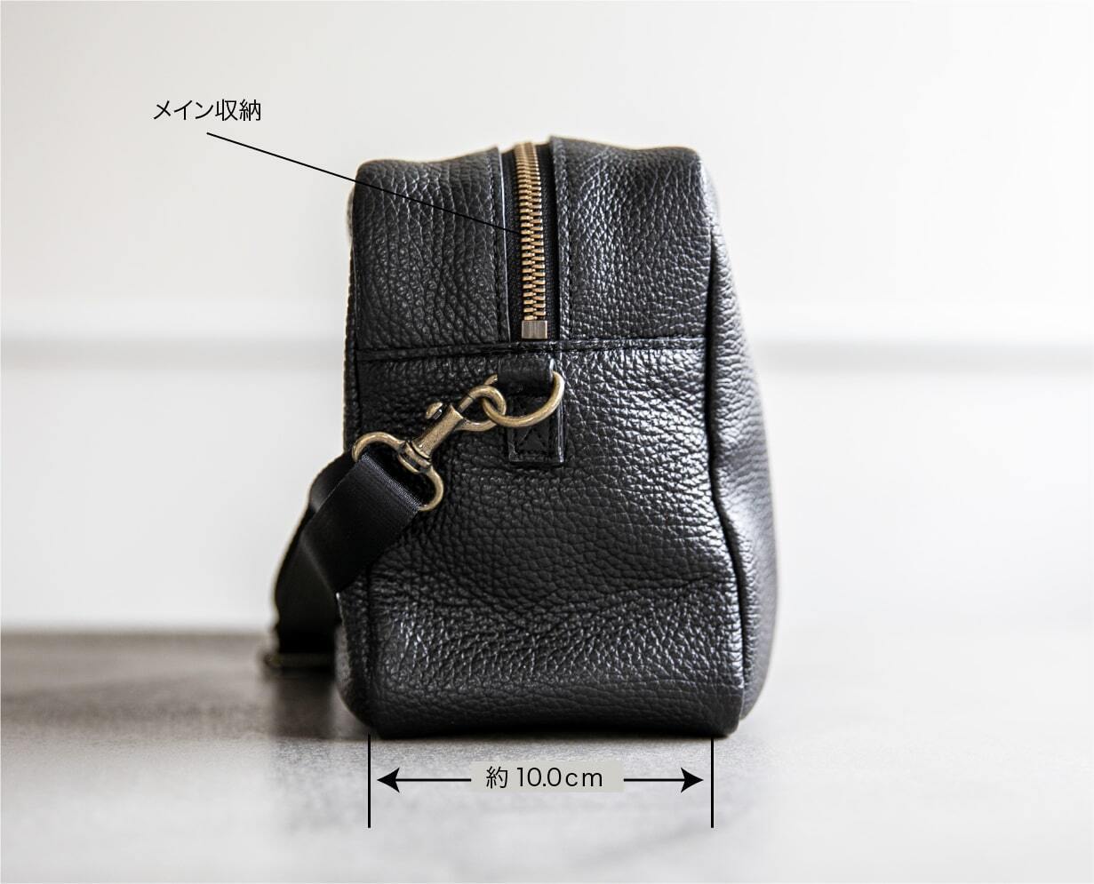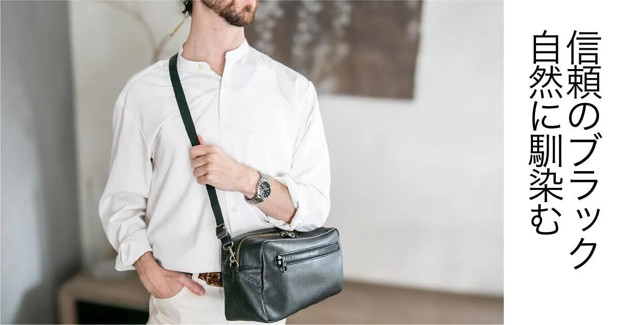 イタリアンレザーの美しい艶感とブラックの組み合わせは、シンプルながらも高級感を感じさせます。使い込むほどに味わいが増すのも魅力です。