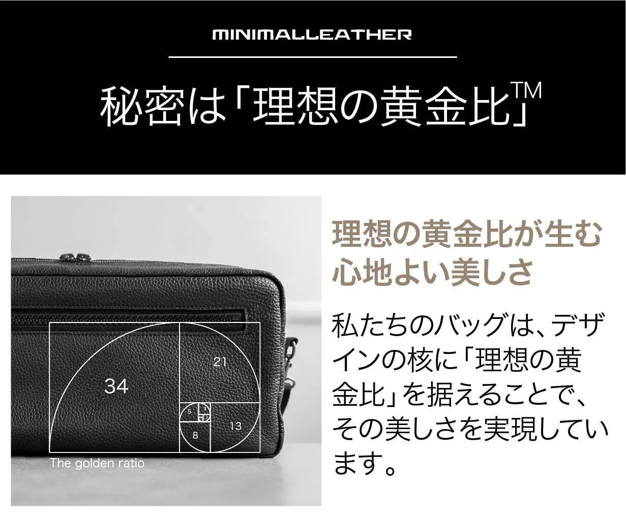 黄金比とは、古代から芸術や建築の世界で「調和と美の基準」とされてきた比率であり、人々に自然な心地よさと洗練された印象を与えます。この比率をバッグのフォルムやディテールに取り入れることで、視覚的なバランスだけでなく、持ったときのしっくりとした感覚まで計算されています。
