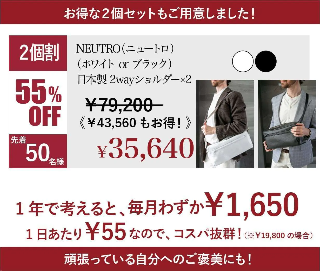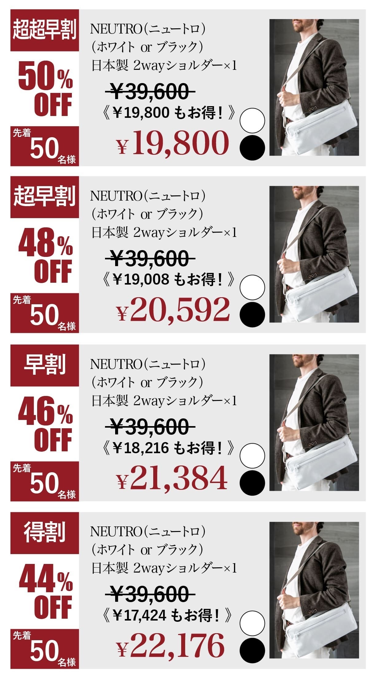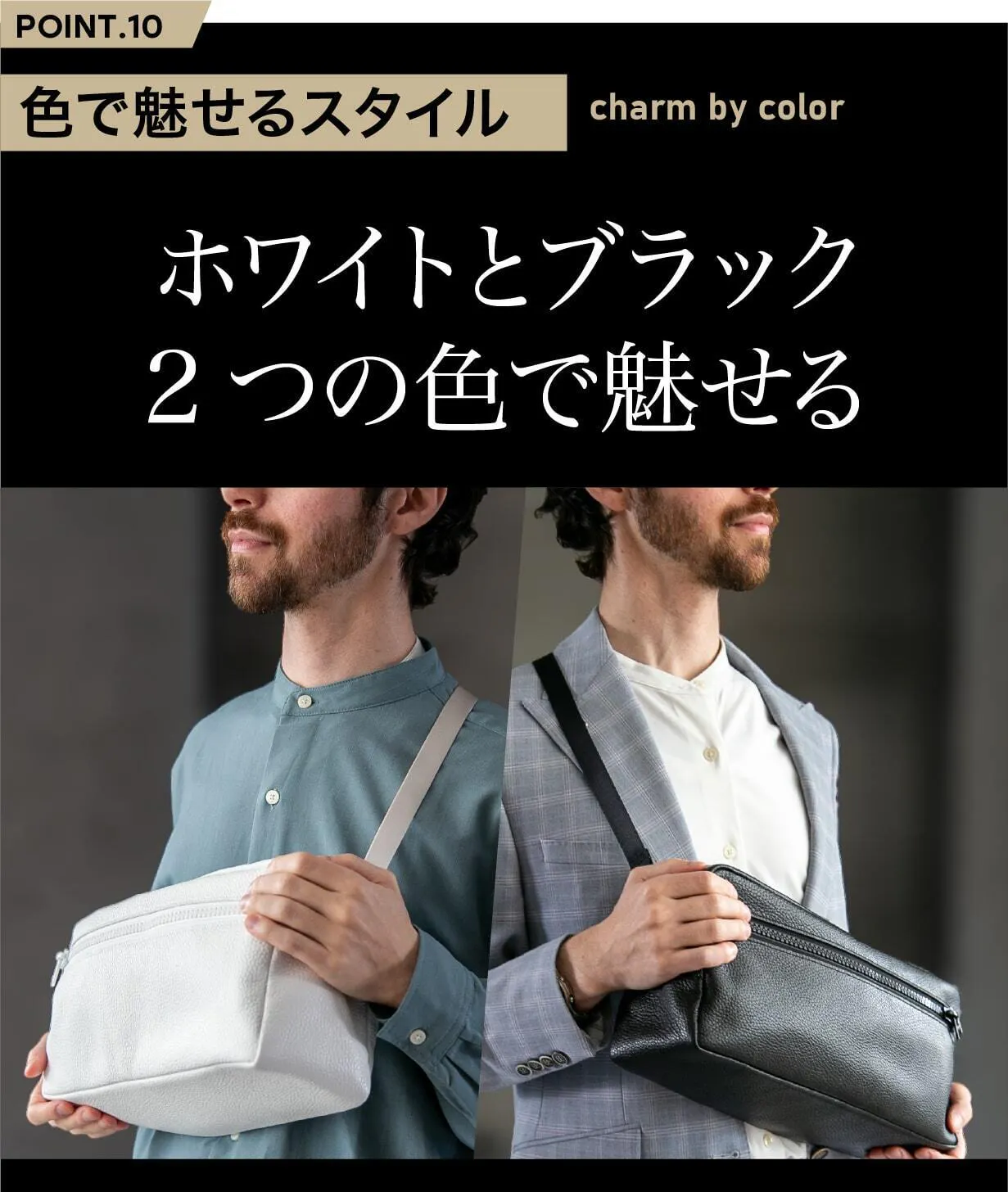 今回は、イタリアンレザーを使用した「ホワイト」と「ブラック」の2カラーをご提案。それぞれが持つ独自の魅力を活かし、あなたのスタイルに最適な選択を可能にしました。