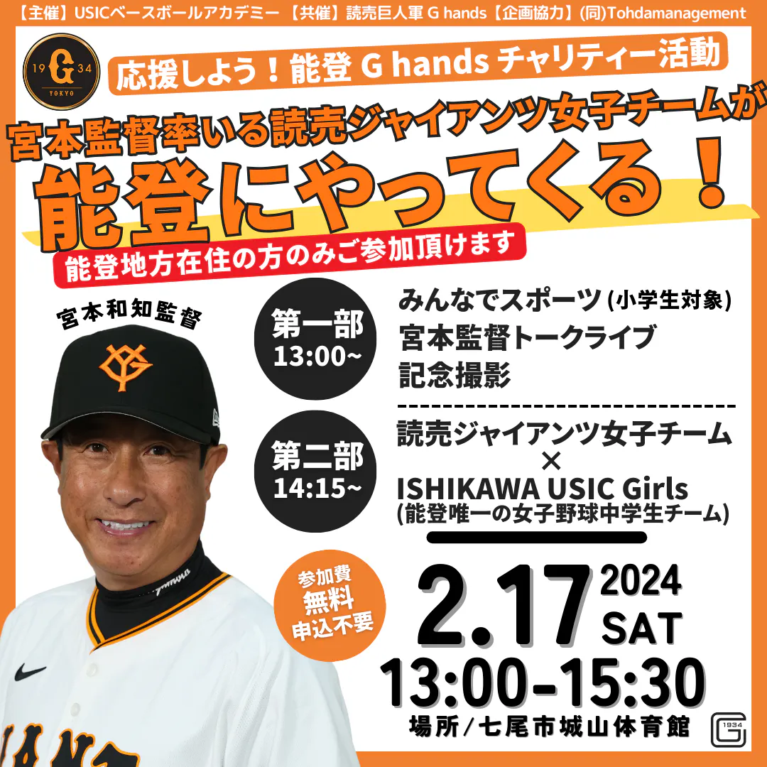 そんな活動を続けている中で、奇跡のようなご縁を頂きました。元読売巨人軍のピッチャーで、現在は読売ジャイアンツ女子野球チームの監督を務める宮本和知監督から「女子選手を連れて能登に行かせて欲しい」とご連絡を頂きました。