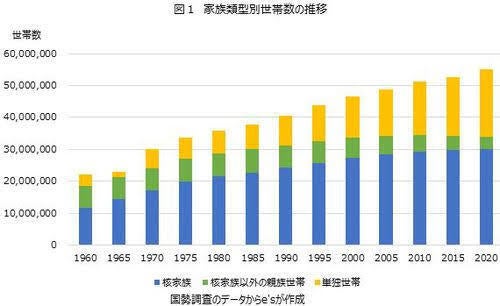 つまり高齢者層が子世代と離れて暮らしている世帯数が1970年以降から増え続けていることがわかると思います。