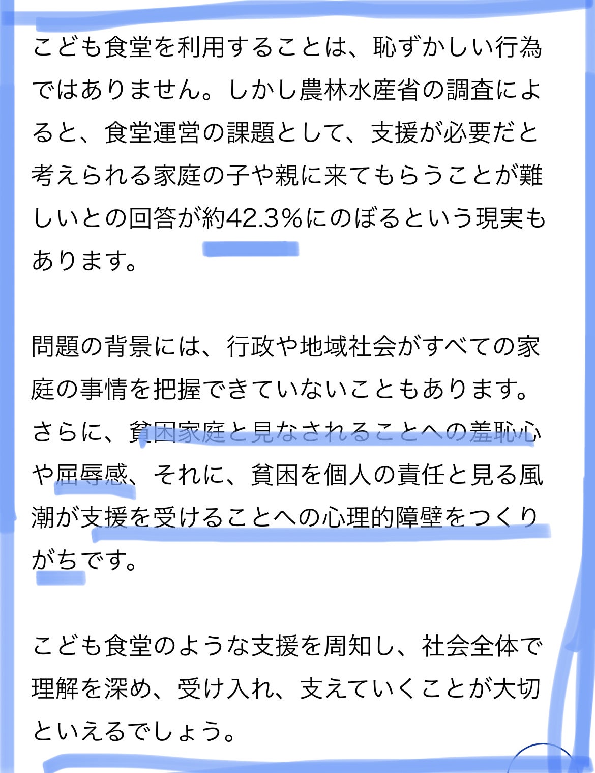つまり「金銭的に厳しいけど、支援を受けるにも周りの目が気になって支援が受けられない、、」という家庭が一定数いるということになります。