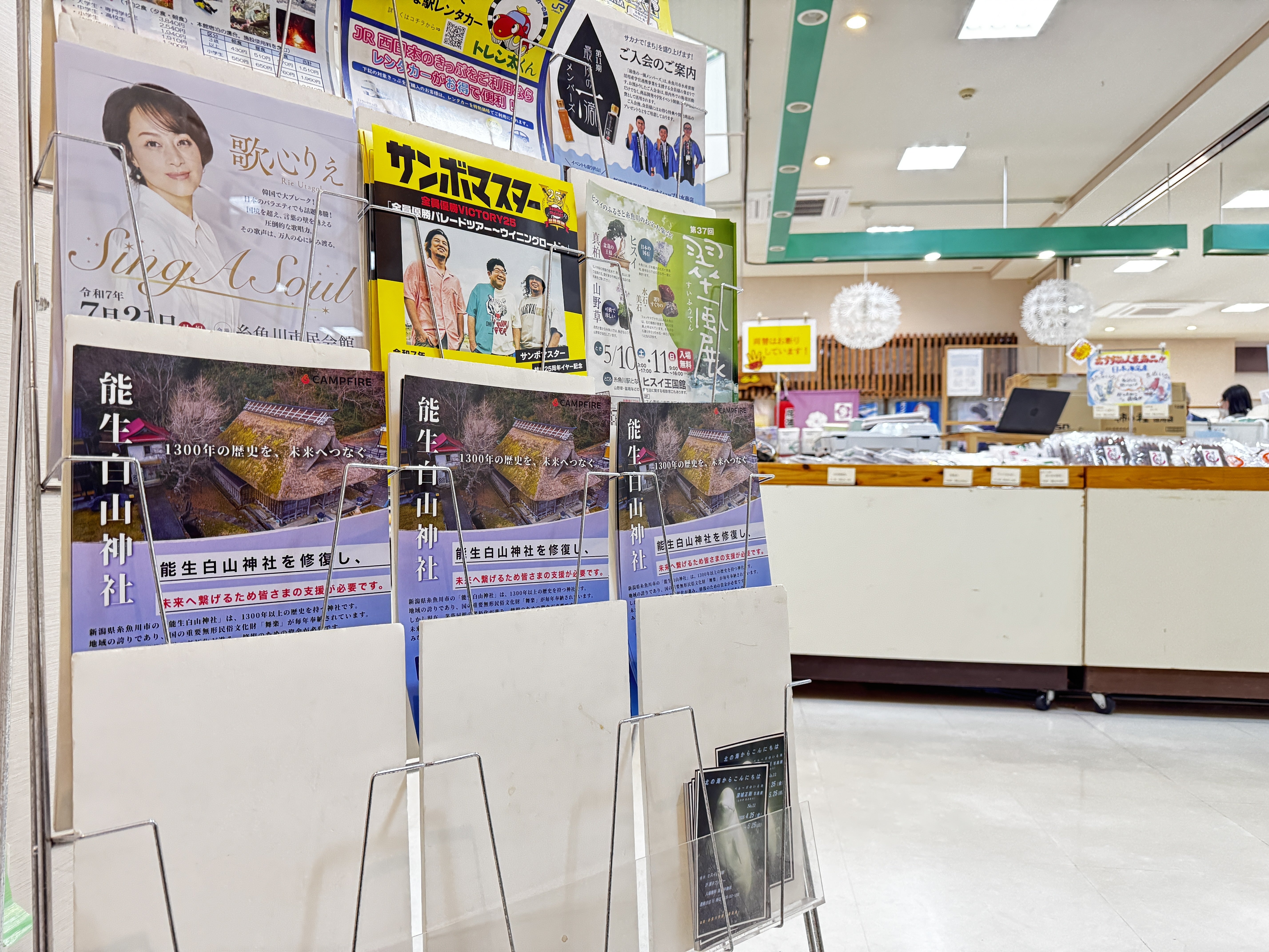 【お知らせ】能生白山神社のクラウドファンディングを応援するパンフレットを、糸魚川駅近くの施設「キターレ」に設置しました!お近くにお越しの際は、ぜひ立ち寄って手に取ってみてください。地域の誇りである能生白山神社の伝統を、次の世代へとつないでいくために、私たちはクラウドファンディングに挑戦しています。少しでも多くの方にこの取り組みを知っていただき、共に支えていただけたら嬉しいです。ご支援だけでなく、シェアやお声がけも大きな力になります!▼クラウドファンディングページはこちらどうぞよろしくお願いいたします!