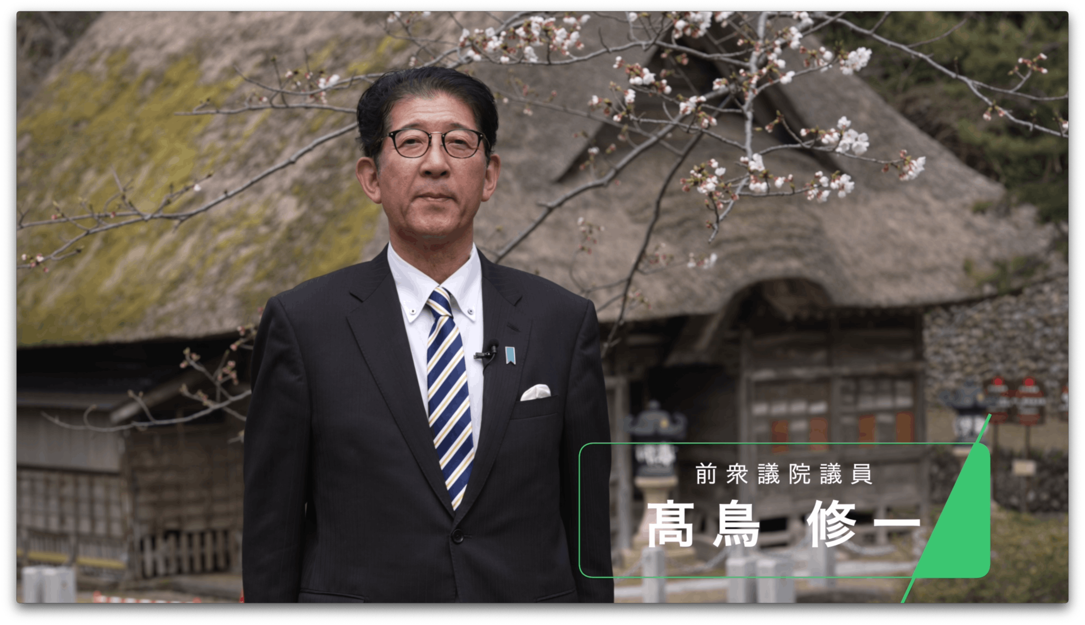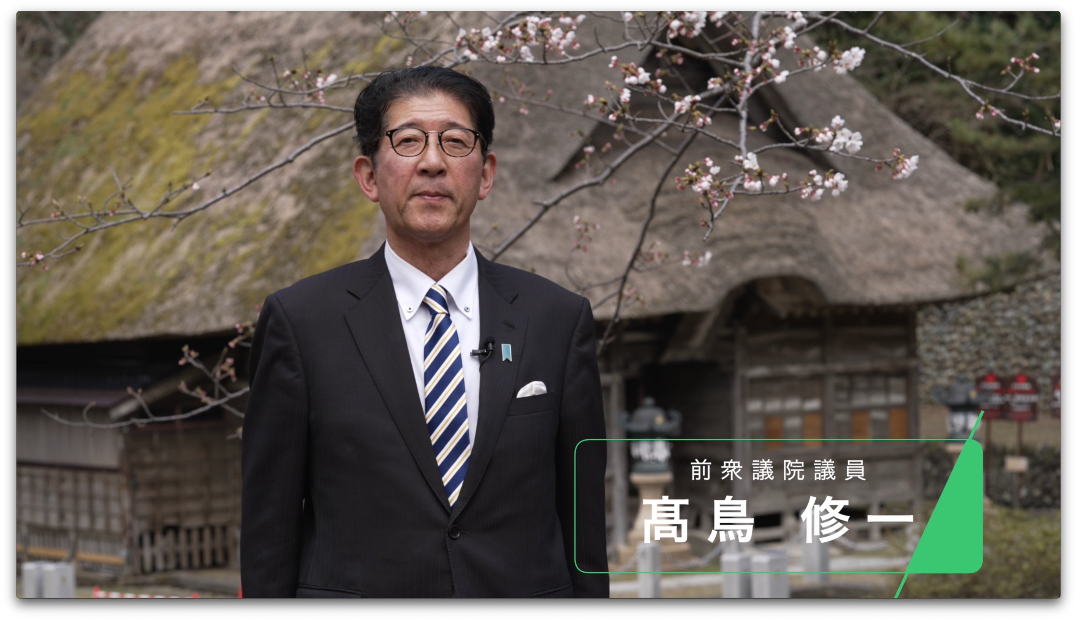能生白山神社茅葺屋根修復プロジェクトに対して、新潟5区選出の高鳥修一前衆議院議員より、温かい応援メッセージをいただきました。