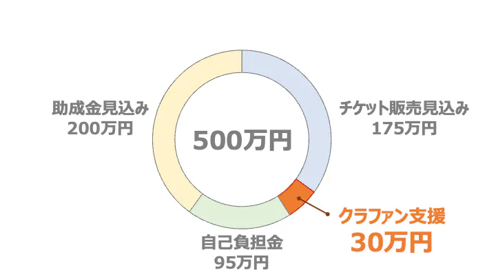 支出全体は約500万円を見込んでいます。そのため500万円を工面する必要があるのですが、そのうち30万円をご支援いただければと存じます。