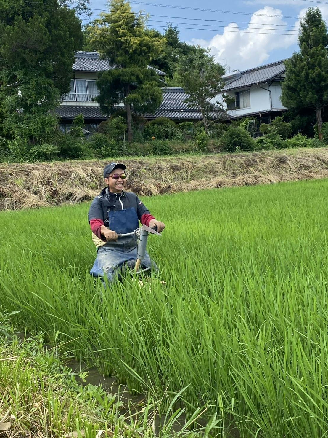 バイクみたいな乗り物で田んぼを爆走。昔は一斗缶で手作業だったと聞いて、文明のありがたさに震えました。