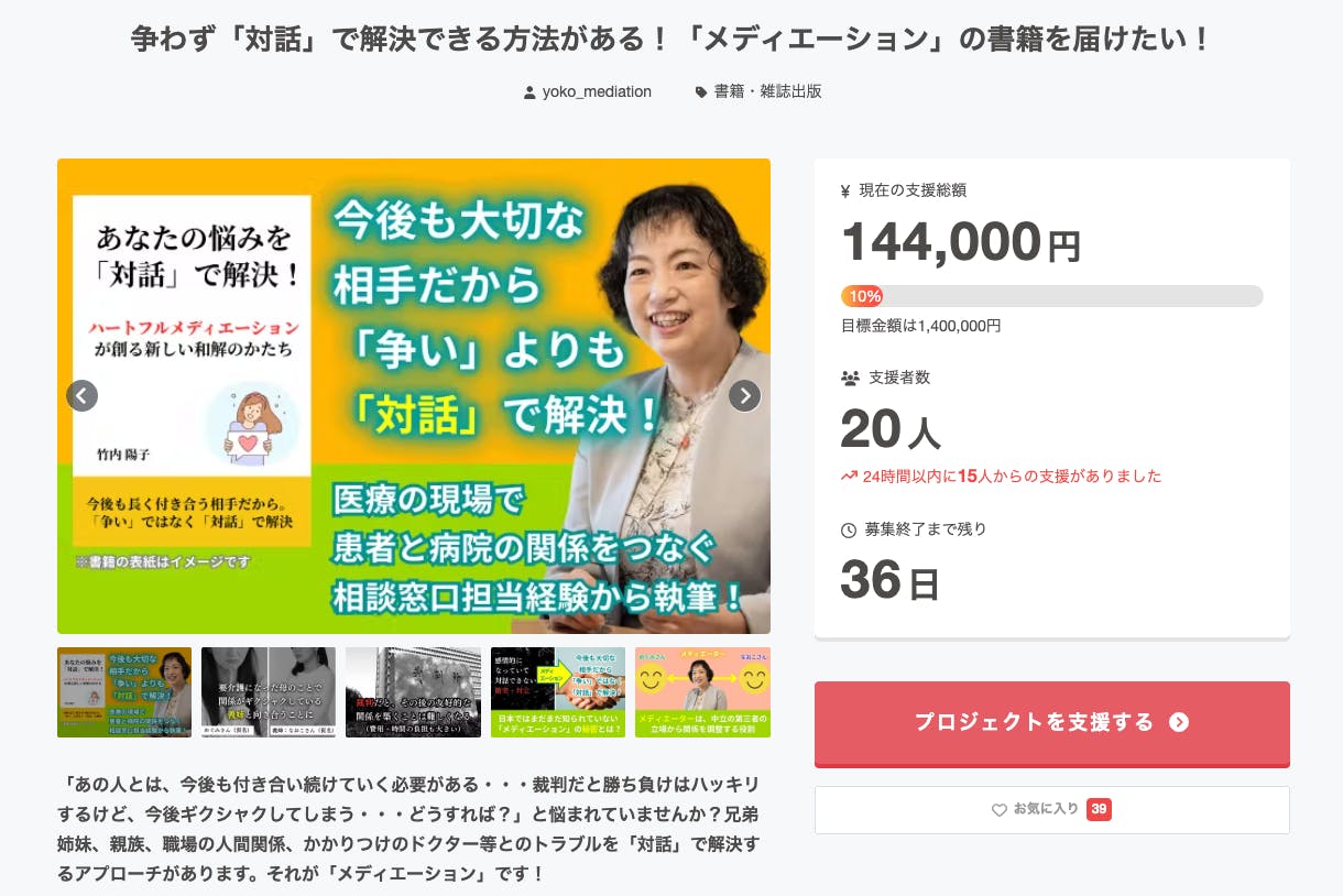 争わず「対話」で解決できる方法がある!「メディエーション」の書籍を届けたい!