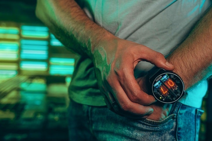腕に巻けばその存在感とニキシー管の動きに興奮することでしょう。