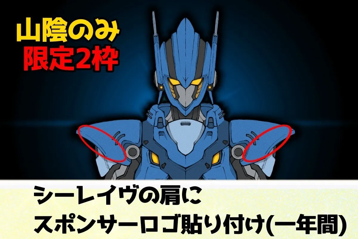シーレイヴの肩に、山陰の企業の支援者様のスポンサーステッカーを掲載します。