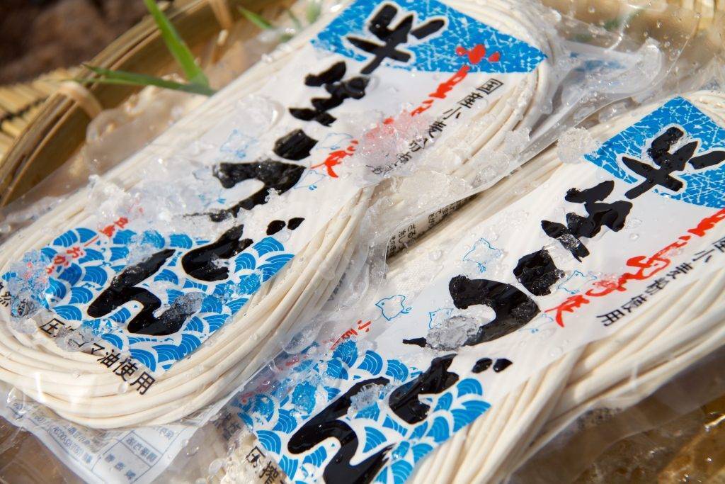 小豆島には素麺の技法で作った手延べうどんがございます。手打ちうどんは麺が角ばっていますが、手延べうどんはまるいです。このうどんひと味違います。モチモチした触感のなかにつるっと食べれるこのうどんは、ふゆの鍋のしめにも最高です。荷崩れすることがないので、うどんすきなんかにも最高の一品、鍋焼きうどんにしても、モチモチした触感を残しながらもふうふうしながらたべられます。