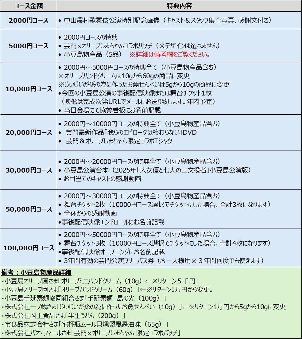 『6年降りの芸門さんの小豆島公演を応援します。賛同していただける方に少しでも小豆島を身近に感じていただき、公演の大成功に繋がれば幸いです』