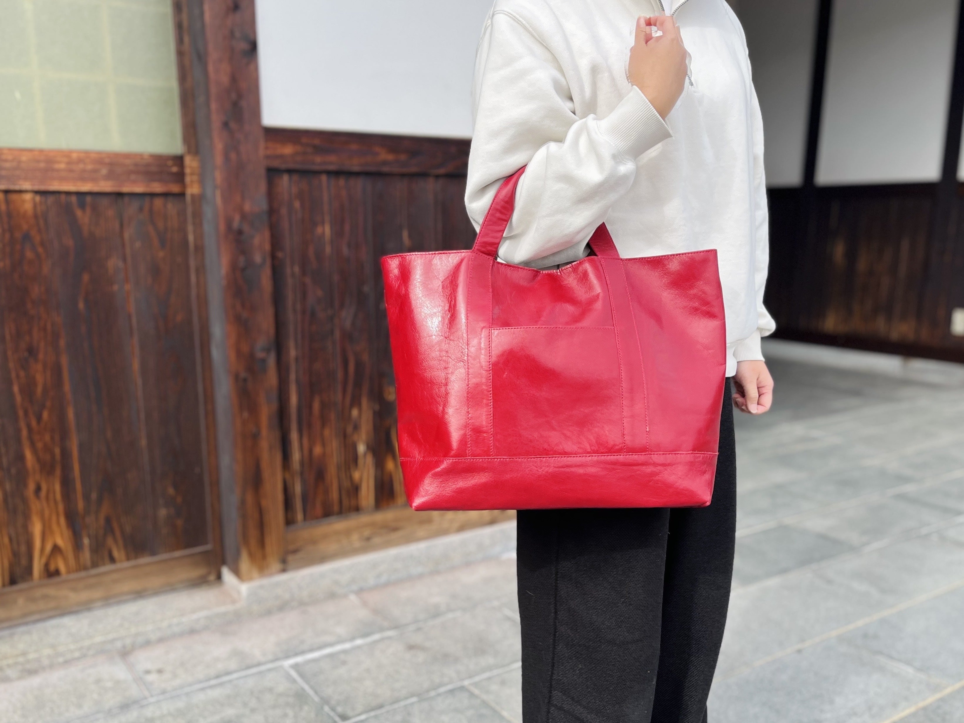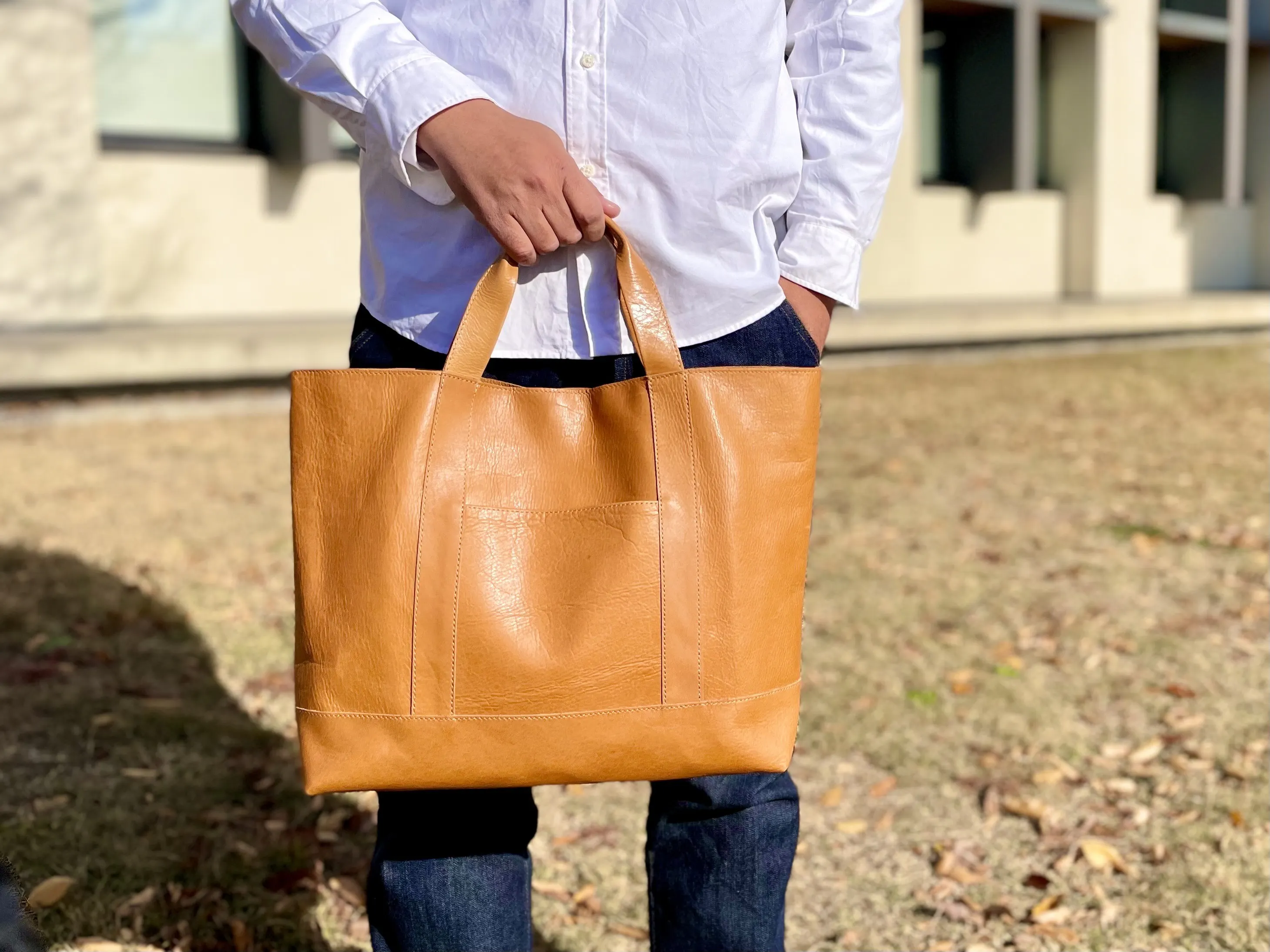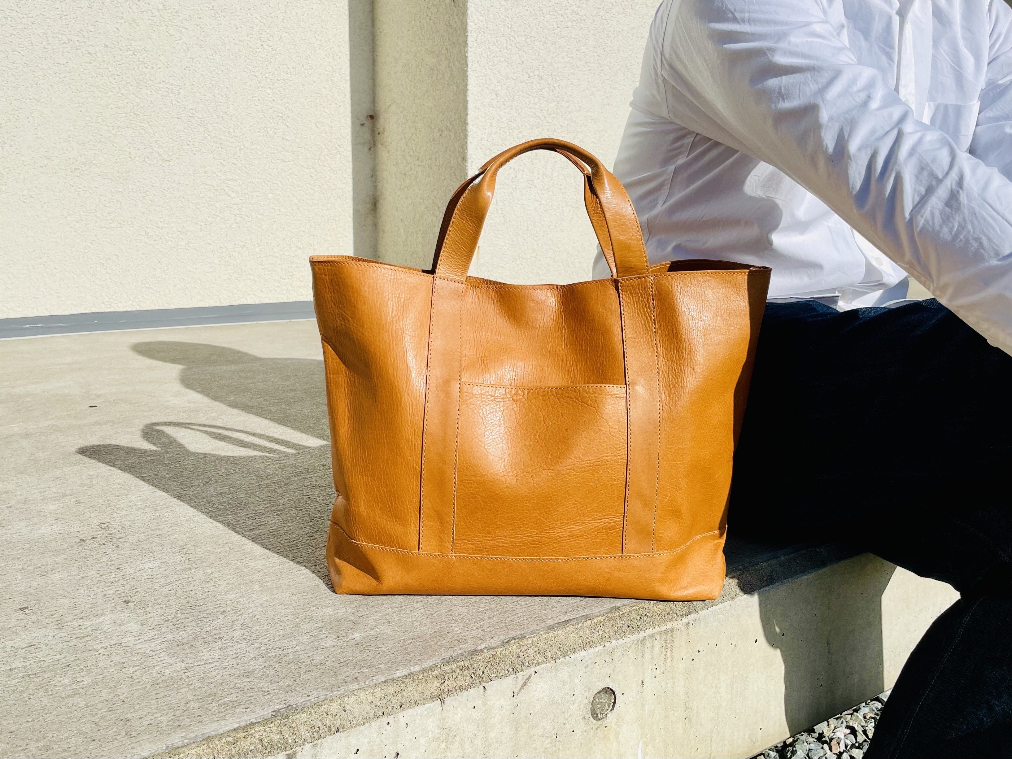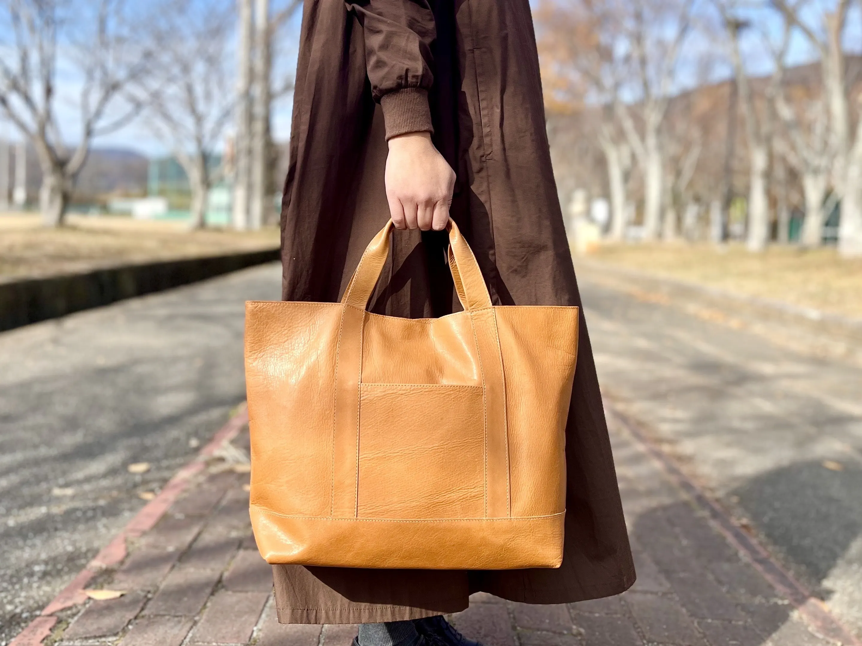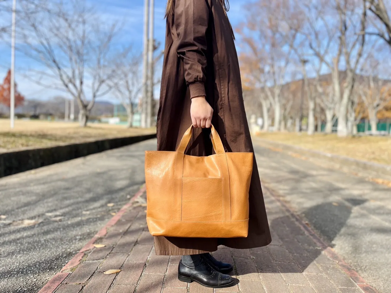 『まいにちレザートート』に使用した革は、軽くて柔らかい革です。持った瞬間から手に馴染み、肌に吸い付くような柔らかい使い心地を実感してください。