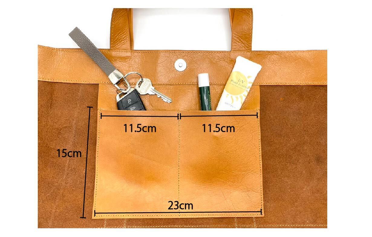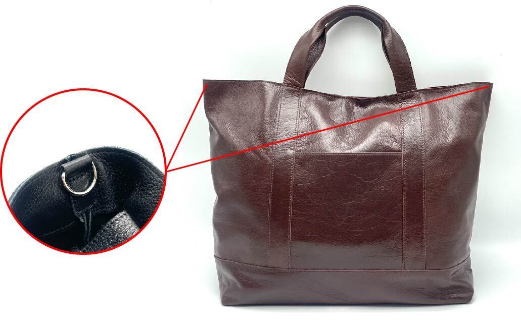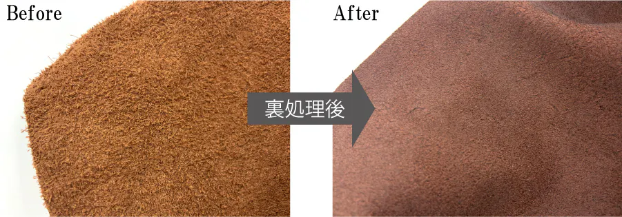 バッグの中に裏地を付けない場合、革の裏面が剝き出しになります。その際に、入れた荷物に革の裏面に残っているケバが、荷物に付着してしまいます。そのため革のケバ立ちを抑える加工を取り入れました。裏地がなくても、気にせずにハンカチやガジェットなどを入れて気軽に持つことが出来ます。